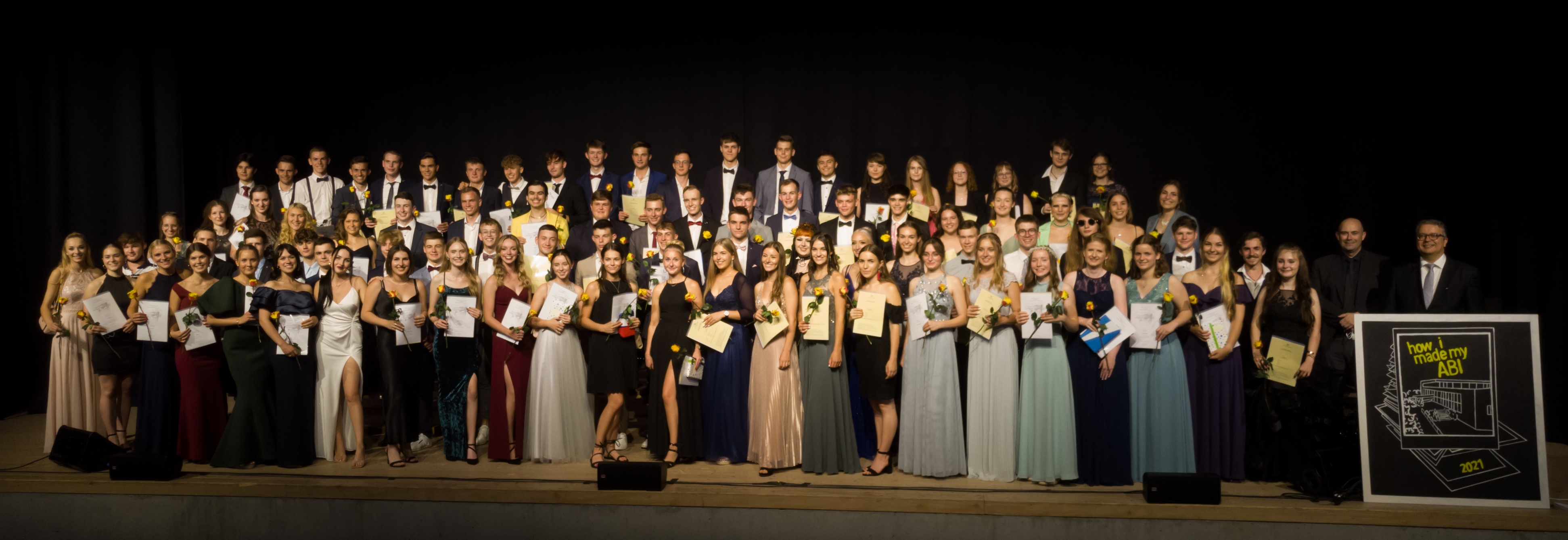 Das von den Abiturientinnen und Abiturienten gewählte Motto „How I made my ABI“ gab Anlass, auf die vergangene Schulzeit zurückzublicken, die vor allem in den vergangenen Monaten große Herausforderungen mit sich gebracht hatte. Für ihr solidarisches und verantwortungsvolles Handeln unter den Einschränkungen bekamen die jungen Erwachsenen Dank und Applaus.