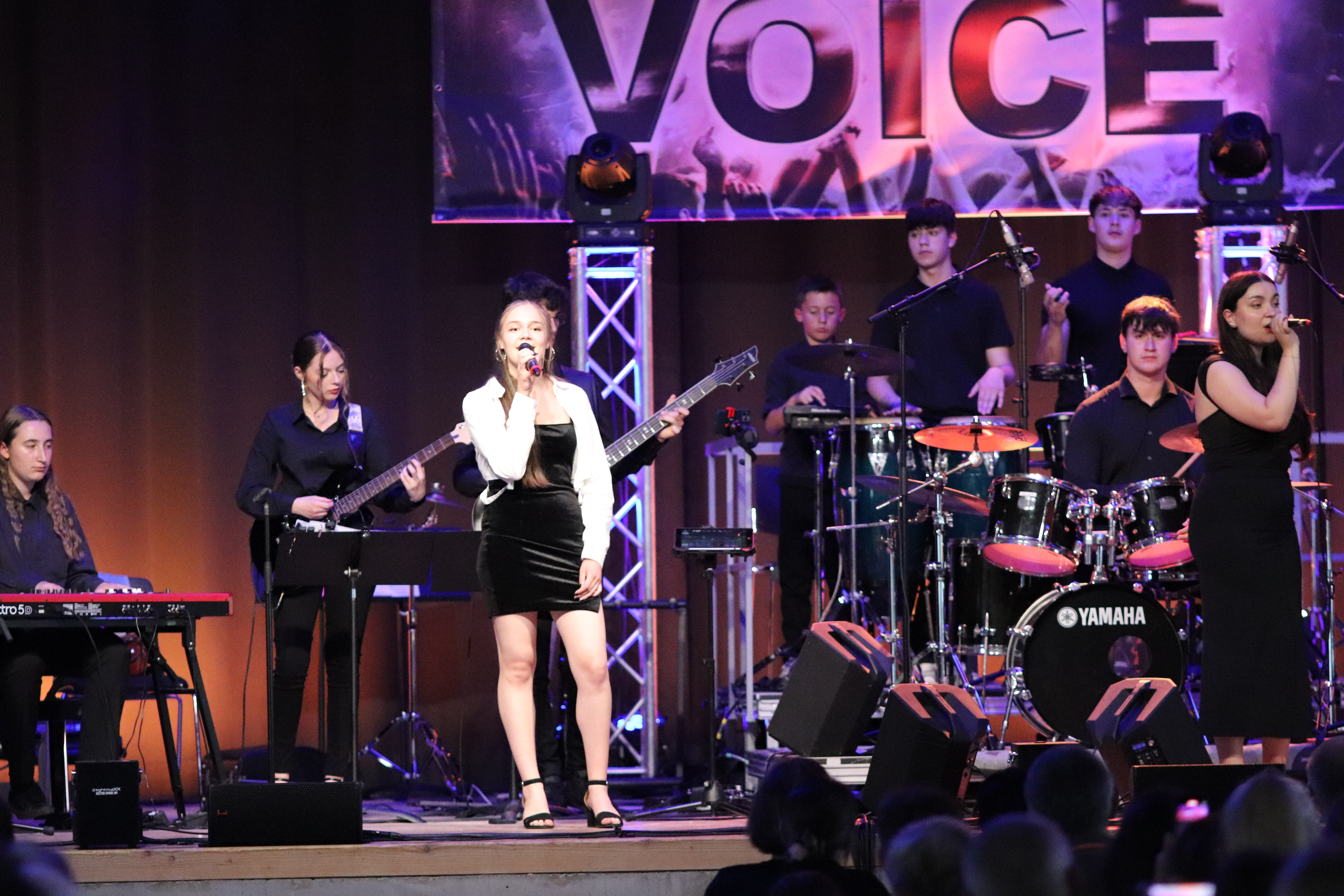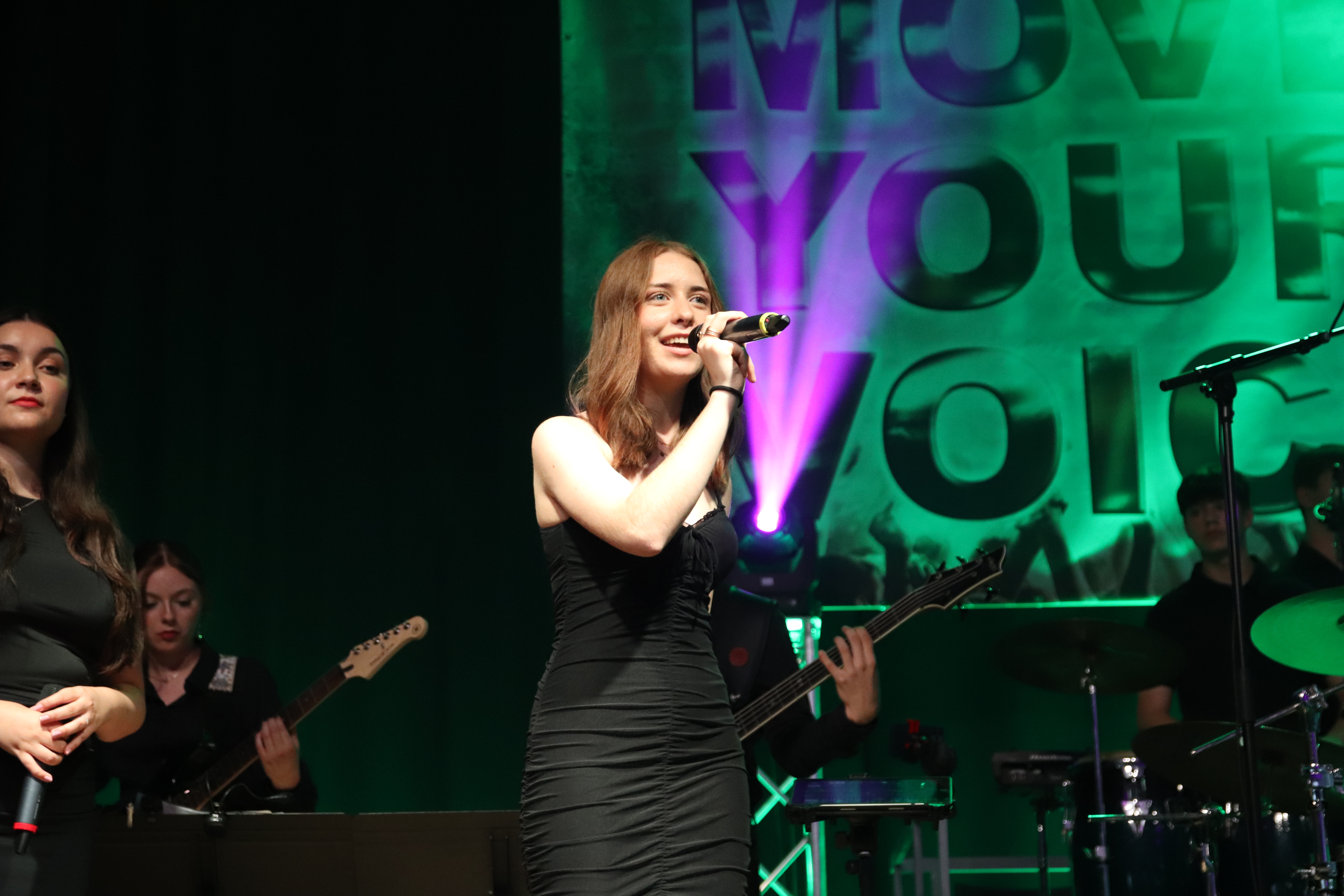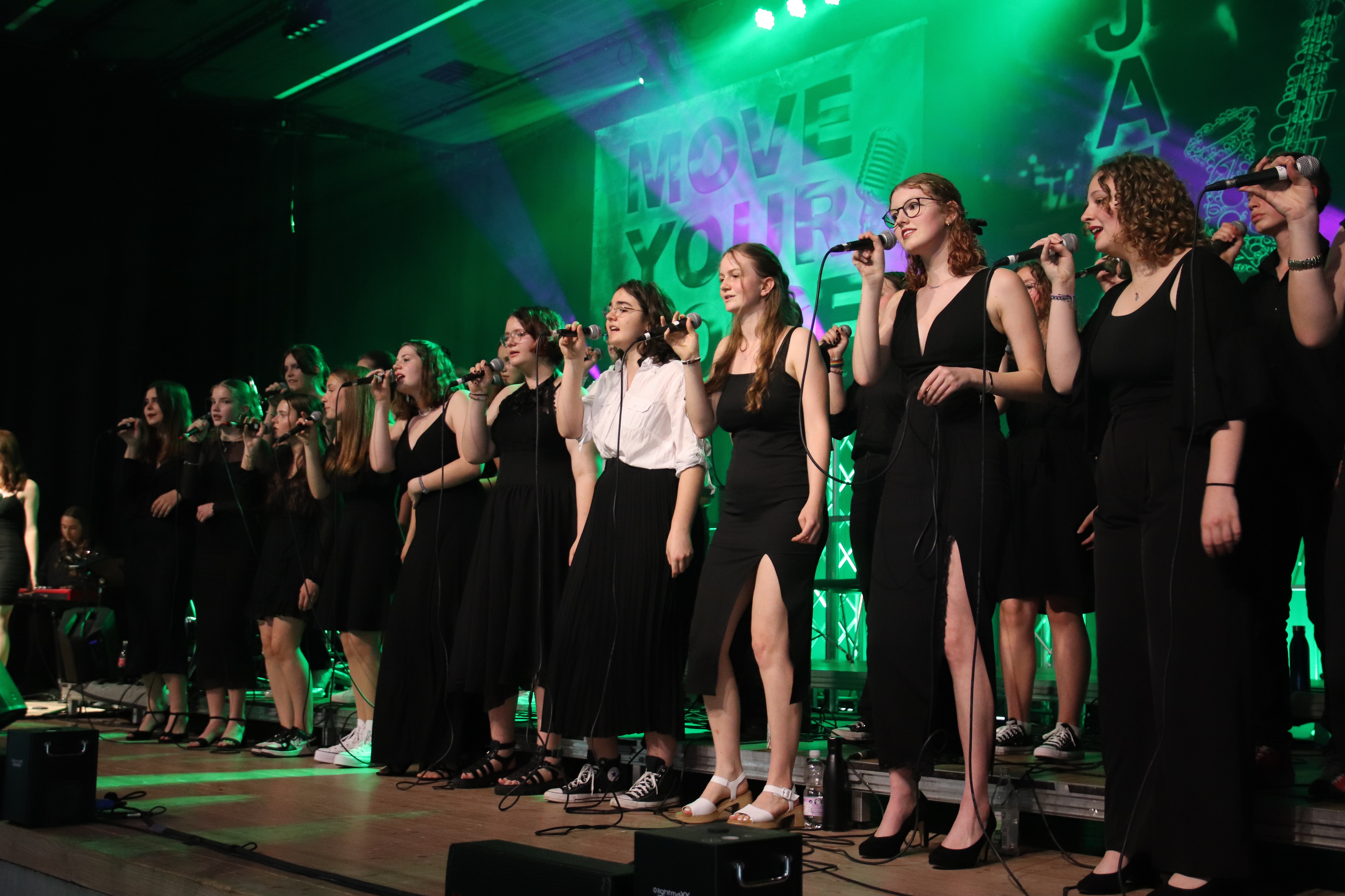 Über 1.100 Menschen waren gekommen, um an diesem denkwürdigen Jazz- und Rockkonzert mit dabei zu sein. Der erste Teil des Konzerts wurde vom Popchor „Move your Voice“ unter der Leitung von Tobias Schulz und Patrick Heil gestaltet und setzte von Anfang an emotionale und musikalische Akzente. Der Vorhang öffnete sich mit dem schwungvollen Song „Get on my Love“, der das Publikum sofort in seinen Bann zog. Leonie Stolz übernahm bei diesem Song das Solo und überzeugte.