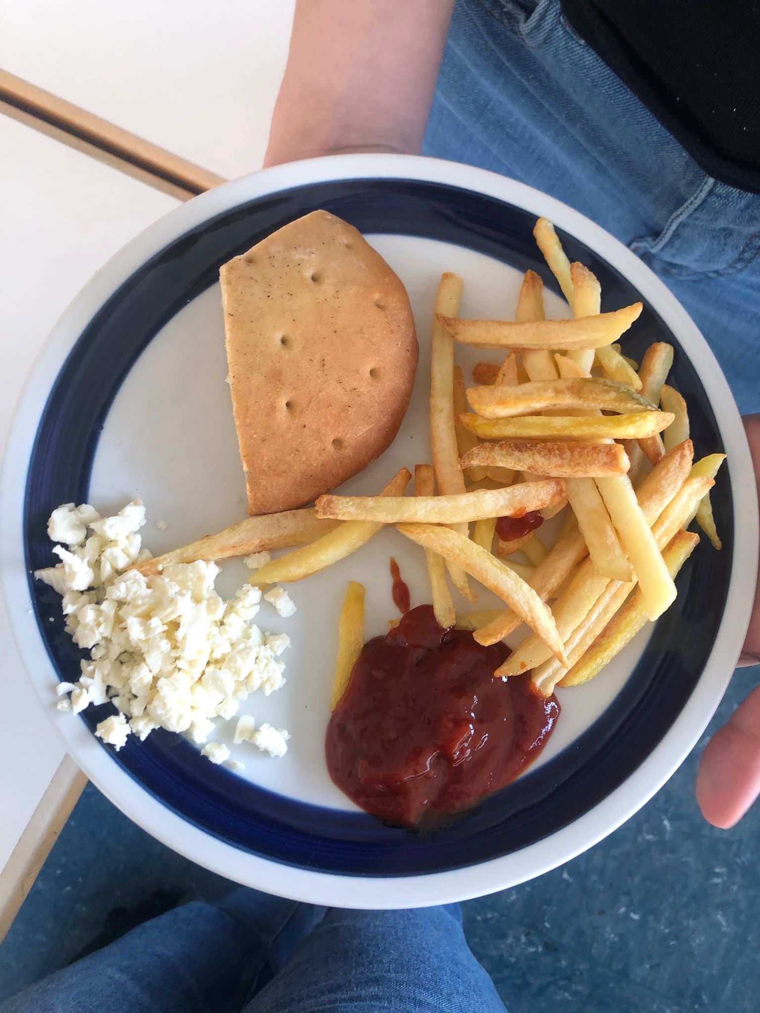 Schon am Donnerstag davor hatten wir das Menu geplant, am Montagmorgen teilte uns Herr Wasmer dann die französischen Rezepte aus. Danach machten wir uns alle zusammen auf den Weg, um alles einzukaufen. Folgendes stand auf dem Plan: Als Vorspeise selbst gemachtes Bannock. Das ist eine Art Fladenbrot, das am vorherigen Tag von zwei Schülerinnen gebacken wurde. Zudem gab es noch eine Erbsensuppe, die Herr Wasmer mitgebracht hat. Als Hauptgang Poutine (Pommes mit Barbecue-Sauce und Hirtenkäse). Der Nachtisch waren zwei Tarte au sucre (wie der Name schon sagt: eine Zuckertorte) und eine Tarte au sirop d’erable (Ahornsiruptorte).