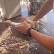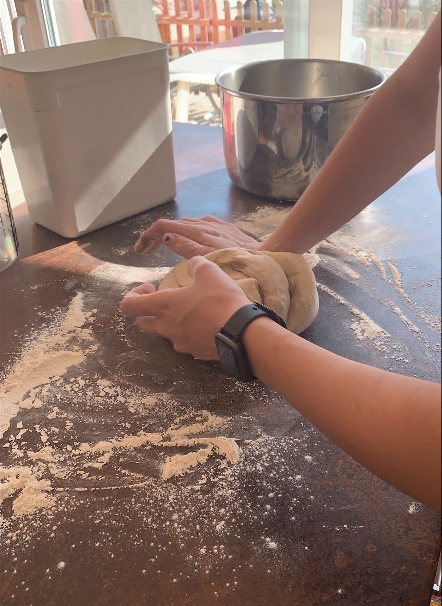 Die Einkäufe wurden zwischengelagert und pünktlich um 13 Uhr ging es dann in der Küche los. Wir hatten sehr viel Spaß und es war eine willkommene Abwechslung in Schulalltag. Herr Wasmer baute in der Zwischenzeit die Technik für den geplanten Videochat mit Yvan, einem Bekannten von ihm aus Québec, auf. Als wir mit kochen und backen fertig waren, gingen wir ins Esszimmer, wo alles schon aufgebaut war. Wir sprachen mit Yvan und trotz vorheriger Bedenken verstanden wir ihn gut. Der Akzent war klar rauszuhören, aber man konnte ihn trotzdem gut verstehen. Man konnte sogar ein paar englische Wörter raushören!