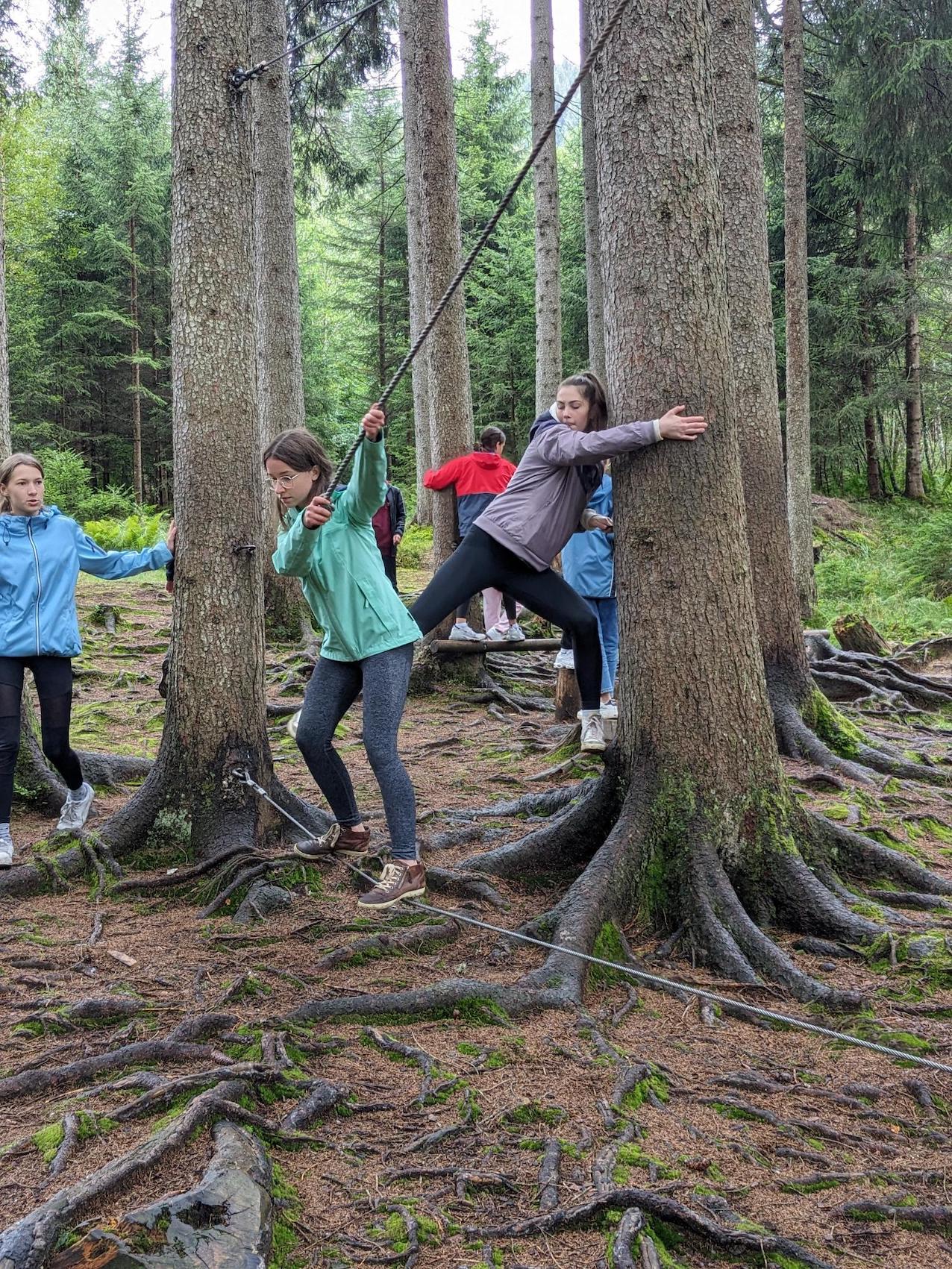 Unsere Teamerlebnisse, das Geocaching mit dem Teamer Chrissy und der Floßbau mit Sara und Helly, wobei wir als Gemeinschaft zusammenarbeiteten.