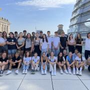 Am Mittwoch besichtigten wir den Alexanderplatz mit der Weltzeituhr und dem Fernsehturm, Berlins höchstes Gebäude mit 368 m. Hier fuhren wir mit dem Aufzug innerhalb von 40 Sekunden bis zur in 203 Metern hoch gelegenen Aussichtsetage und genossen den 360° Blick über Berlin. Die Mittagspause nutzten einige von uns zum Einkaufen, während andere gemeinsam mit den Lehrer*innen den Checkpoint Charlie, den ehemaligen Grenzübergang zwischen dem russischen und dem amerikanischen Sektor Berlins besichtigten. Am Nachmittag spazierten wir gemeinsam vorbei am Roten Rathaus, dem Sitz des Berliner Bürgermeisters Richtung Berliner Dom, Museumsinsel und Humboldt-Forum, wo wir die interaktive Ausstellung „Berlin Global“ besuchten. Abends fuhren wir dann zum Tempelhofer Feld, einem ehemaligen Flughafen von Berlin, dessen Gelände heute von den Berlinern für Sport- und Freizeitaktivitäten genutzt wird. Hier genossen wir (in voller Dunkelheit…) unser Abendessen.