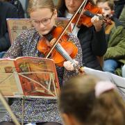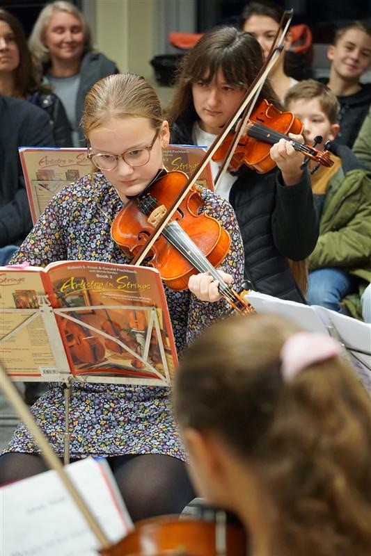 Den Anfang machte ein kleines Adventskonzert, welches von den Streichern aus der Klasse gegeben wurde. Begleitet wurden sie von der Musiklehrerin Susanne Albrecht und von dem Musiklehrer Werner Wittstock, welche die Streicher seit der 5. Klasse unterrichten. So durften sich die Eltern sowie Mitschülerinnen und -schüler über eine Streichinstrumentenversion von „Jingle Bells“ und anderen Advents- und Weihnachtsliedern freuen.