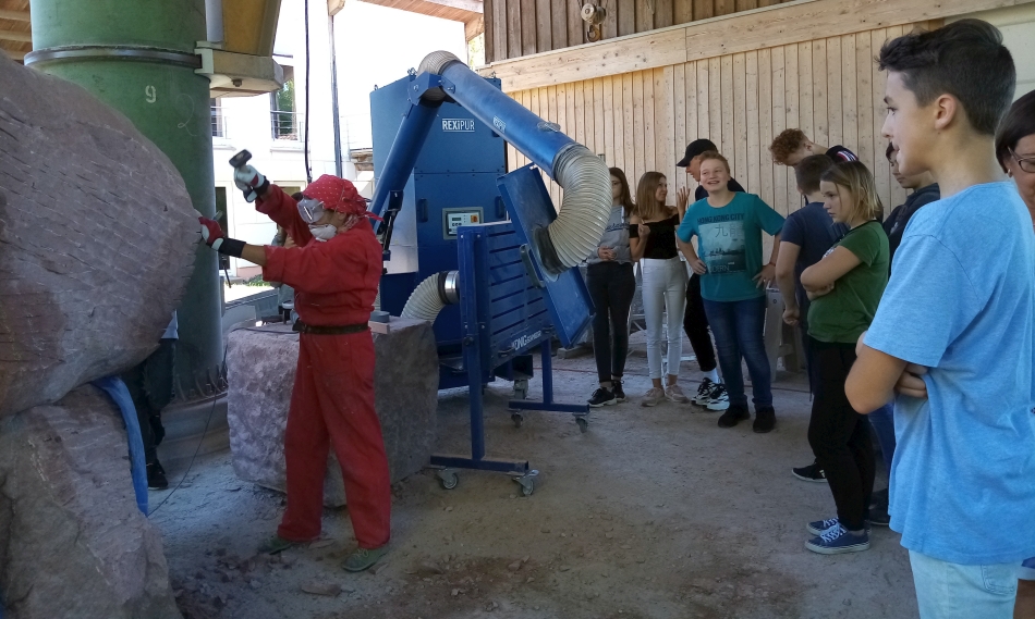 Einen spannenden Start in den Kunstprofil-Unterricht gab es für die Klassen G 8b/c, die am Donnerstag, den 12. September gemeinsam mit ihrer Lehrerin Simone Liebherr die Gelegenheit erhielten, bei dem Bildhauersymposium SYMP19 in Ettenheim fünf internationalen Künstlern bei der Arbeit über die Schulter zu schauen.
