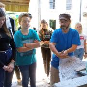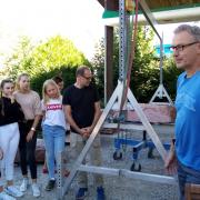 Bei strahlendem Sonnenschein nahmen sich alle fünf Künstler, die momentan gemeinsam auf dem Gelände von Anno Sieberts in Ettenheim arbeiten, Zeit, um ihre Arbeiten vorzustellen. Dabei ließen sie die 19 Schülerinnen und Schüler am Entstehungsprozess teilhaben und beantworteten Fragen auf Deutsch und Englisch.