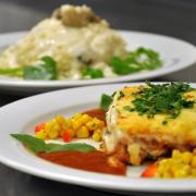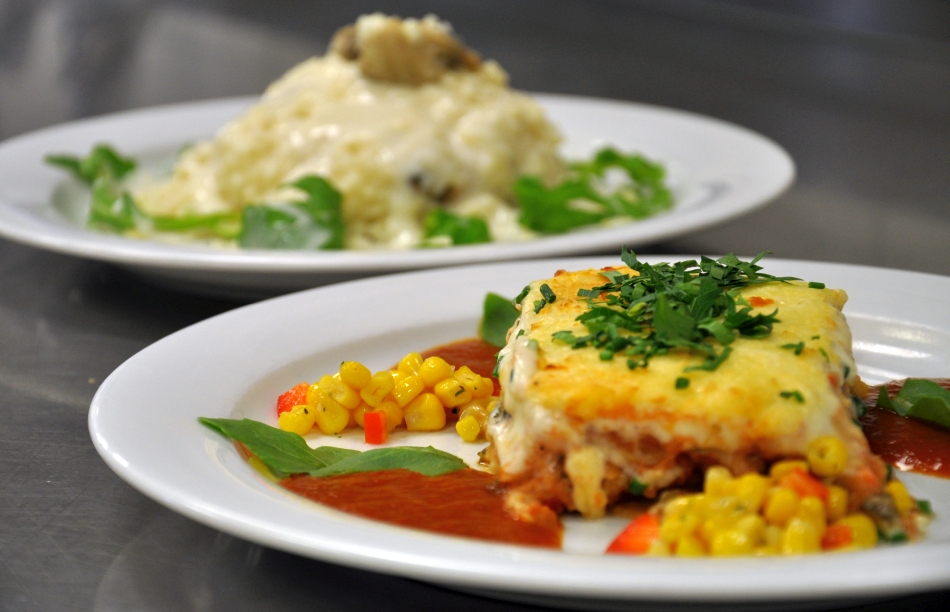 „Was hat mein Schnitzel mit dem Klimawandel zu tun?“ Unter dieser Leitfrage informierten sich alle Klassen am Morgen des 1. Oktober über die Bedeutung von Fleischproduktion und -konsum für den Klimawandel. Bereits auf dem Weg ins Klassenzimmer vorbei an der Mensa nahmen die meisten Schülerinnen und Schüler wahr, dass an diesem Tag etwas anders war: Ein Globus in der Mensa – dazu verschiedene Stellwände zum Thema Klimaschutz. Im Unterricht lieferten dann je nach Klassenstufe passende Infovideos oder Texte wichtige Fakten, etwa welche Folgen die Brandrodung von Wäldern zur Gewinnung von Weideland hat, und es gab Raum sich darüber auszutauschen. Ziel des Aktionstages war es, für die Gründe zu sensibilisieren, aus denen ab nun das Mensaangebot einmal in der Woche – an wechselnden Wochentagen – fleischfrei sein wird. An diesem Tag wurden zum Beispiel Rührei-Brötchen und Veggie-Burger anstelle von Fleischkäse und Schnitzel-Brötchen als Pausensnacks angeboten. Zum Mittagessen hatte das Küchenteam rund um Küchenleiter Uwe Zimmermann Gemüselasagne und Champignon-Risotto mit Gemüse und Trüffelsauce auf den Speiseplan gesetzt.