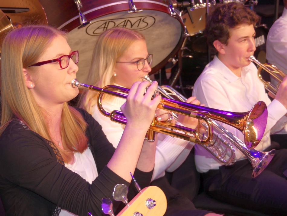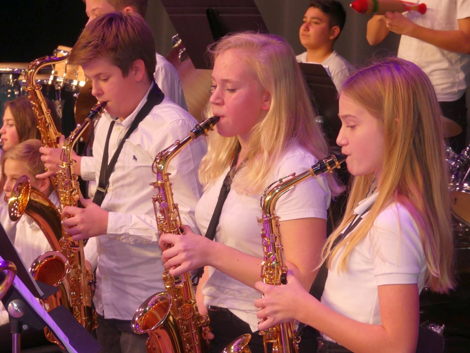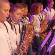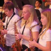 Große Konzertmusik boten Musiklehrer Markus Albu mit seinen vereinigten Bläserklassen R9 und R10. Das anspruchsvolle Stück „Dakota“ nimmt in fünf Sätzen viele Elemente der indianischen Kultur auf. Die konzertante Herausforderung meisterten die Schüler auch deshalb hervorragend, weil die intensive Probenarbeit mit der australischen Gastdozentin den Schülern neue Impulse gab und nichtalltägliche Proben mit einer ausländischen Dirigentin besonderen Spaß bereitete. Die beiden Ansagerinnen benannte das sehr rhythmische und aus der Jazzmusik stammende „Jamming with Charlie“ als ihr Lieblingsstück, was auch an der Spielfreude der Saxophonsolisten Magdalena Eichhorn, Max Trotter und Greta Leser anzusehen war.
