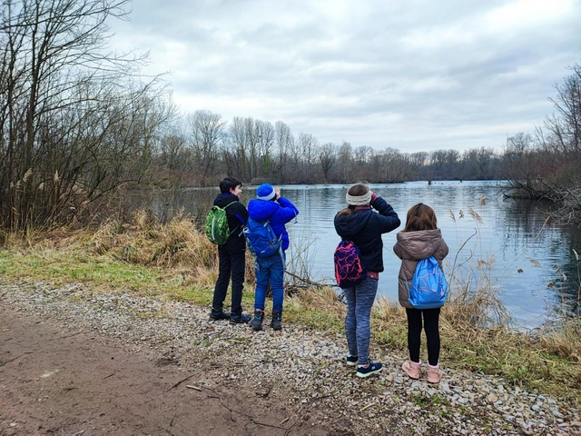 Bei einem strammen, eisigen Wind brach die Naturschutz-AG unter der Leitung von Herrn Stolz zur Winterexkursion in das Naturschutzgebiet Taubergießen auf. Die kleine Wanderung begann an der Fähre in Kappel. Von hier aus ging es über den Damm zur Beobachtungsplattform. Mit Ferngläsern ausgestattet konnten viele unterschiedliche Wasservögel beobachtet werden, darunter Kormorane, Reiherenten, Nilgänse und natürlich Höckerschwäne.