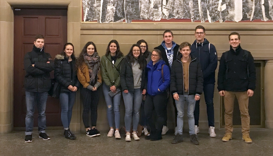 Im Februar besuchte der Lateinkurs der J2 einen Vortrag an der Albert-Ludwig-Universität in Freiburg. Der Kurs traf sich prima vesperi vor dem Kollegiengebäude 1 und da sich Herr Hensle dort noch auskannte, waren wir auch pünktlich im Hörsaal.