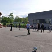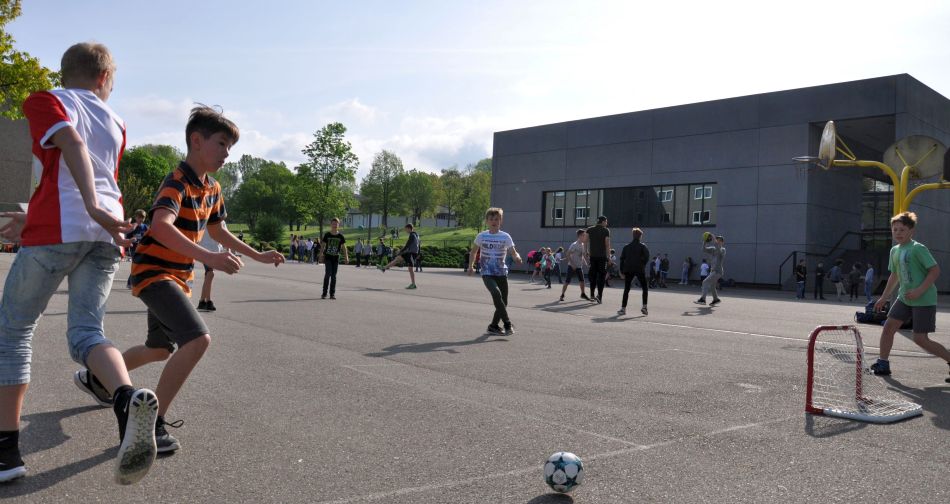 Nun können alle Schülerinnen und Schüler wieder in der ersten und zweiten großen Pause nach Lust und Laune Geräte gegen Pfand ausleihen – wobei selbstverständlich auf einen sorgsamen Umgang geachtet werden muss. Die Neuntklässler organisieren die Ausgabe an der Hütte.