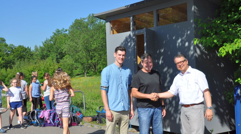 In neuem Glanz und mit neuem Equipment erweitert die Hütte also nochmals die Möglichkeiten zur aktiven Pausengestaltung neben den Tischtennisplatten, dem Kletterfelsen, den Klassenfußbällen oder dem Trimm-dich-Parcours, auf dass beim Klingeln zum Unterricht wieder alle ausgetobt – und gut erholt – auf ihrem Platz sitzen können.