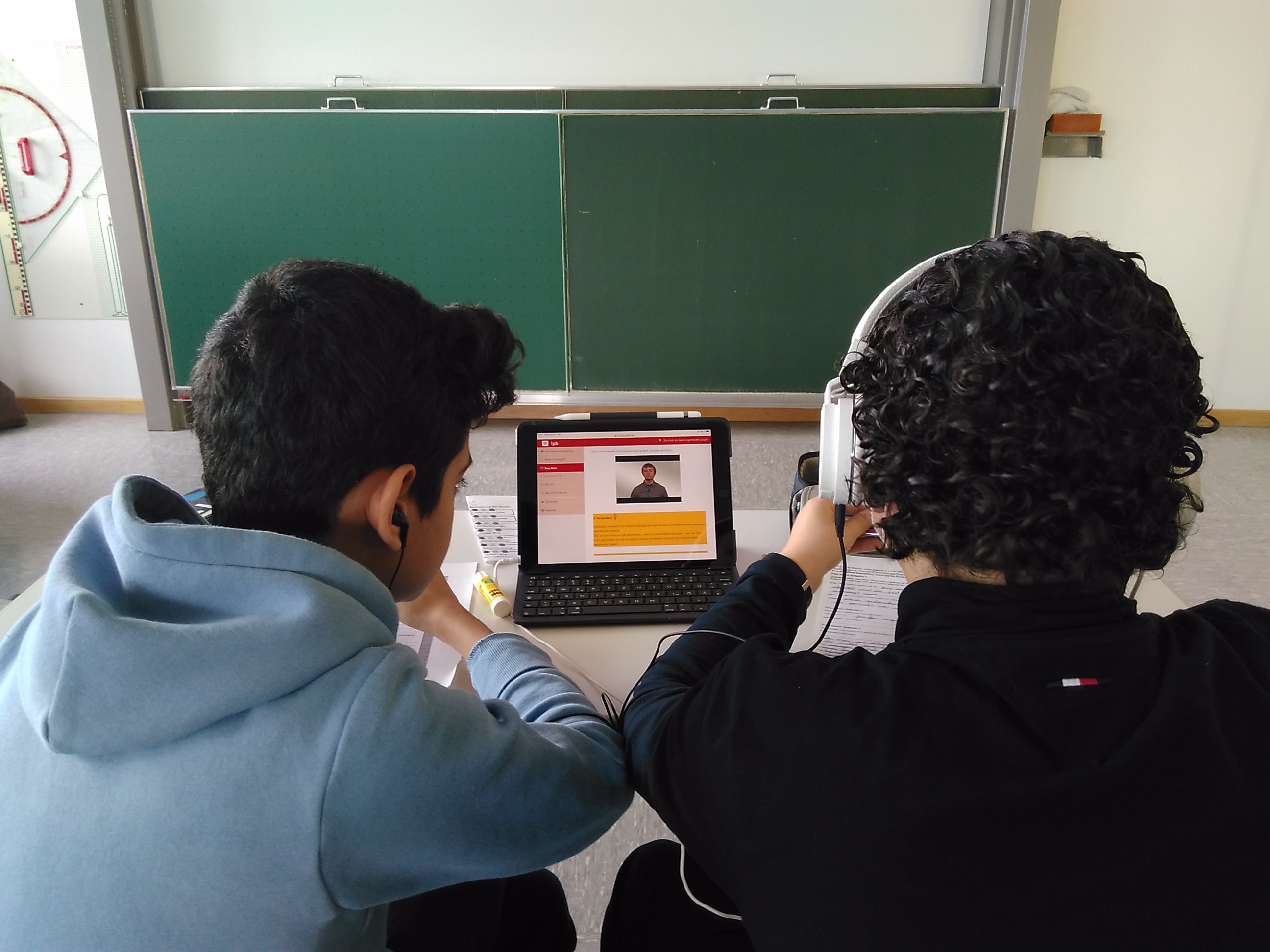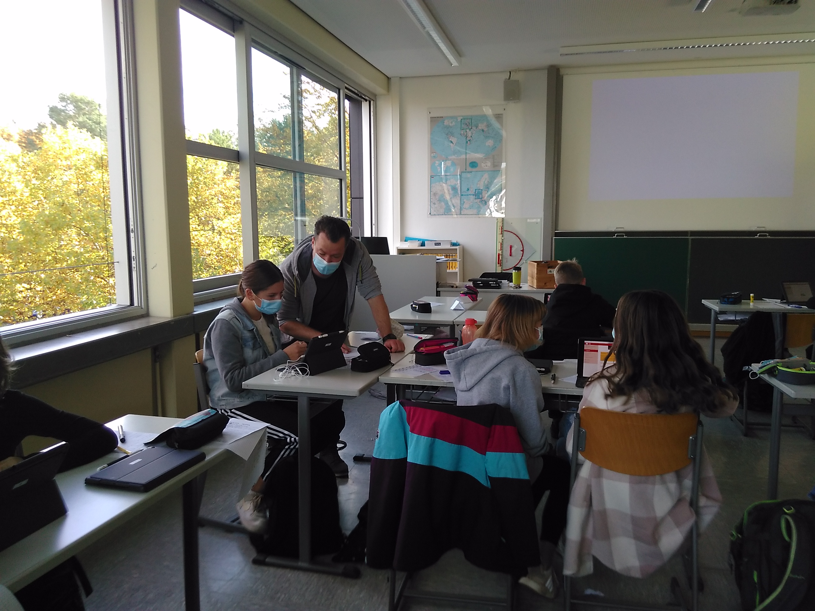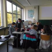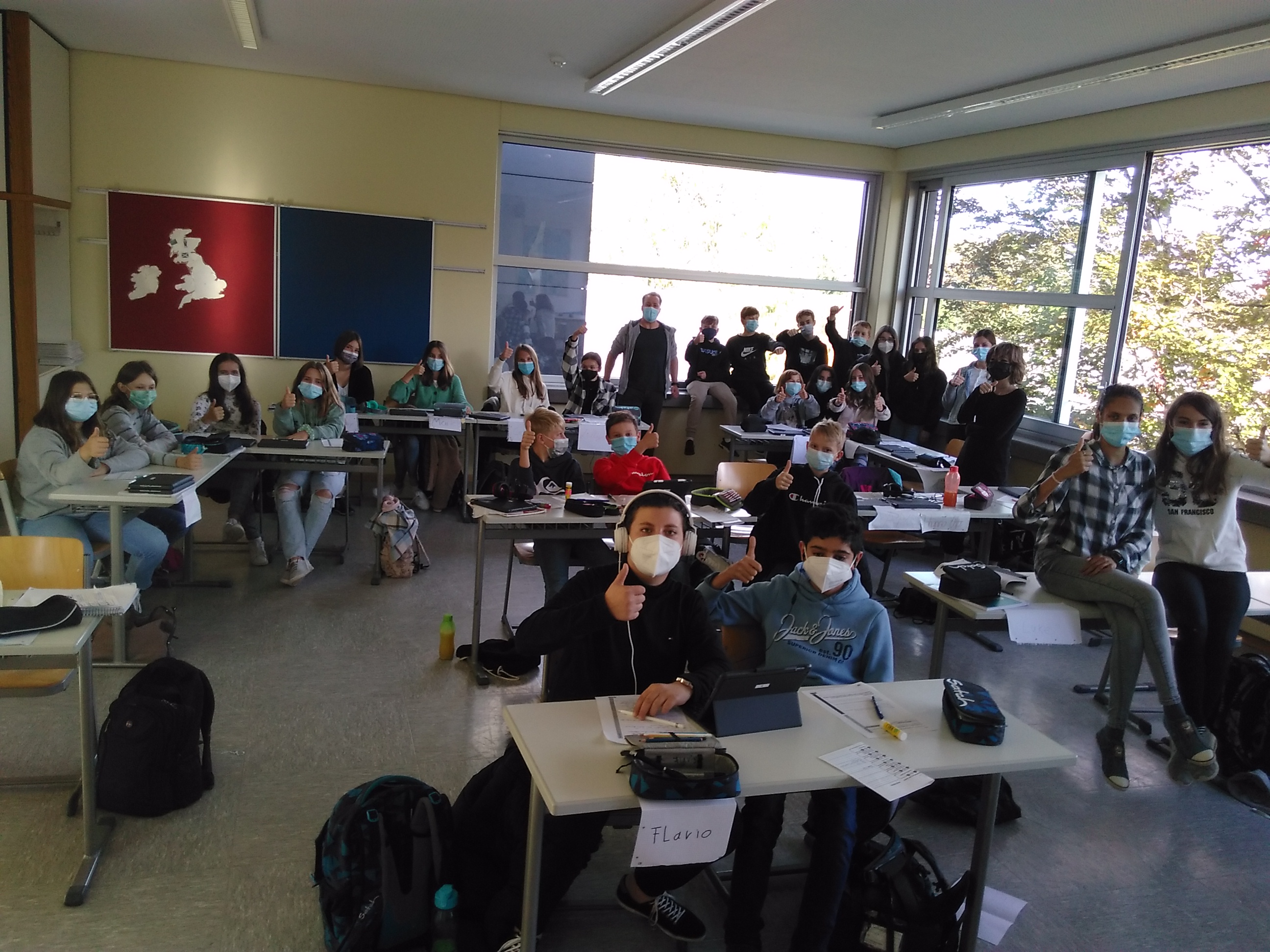 Bei Verschwörungstheorien, so erklärt Medina aus der Klasse 7e, handelt es sich um Theorien, die teilweise sehr abstrus klingen – und doch in manchen Kreisen als wahr verstanden werden. Doch ab welchem Punkt beginnt eine Verschwörungstheorie und woran kann man eine solche erkennen? Wie hängen Verschwörungstheorien und Antisemitismus zusammen? Einen ganzen Vormittag widmen sich die Siebtklässler zusammen mit ihren Lehrern Herrn Giesel und Herrn Schek Fragen wie diesen. Im Rahmen eines E-Learning Programms der Landeszentrale für politische Bildung lernen die Schülerinnen und Schüler die Seriosität von Quellen aus dem Internet besser einzuschätzen. Auch nutzen die Schülerinnen und Schüler in diesem Rahmen die Schul-iPads, um Verschwörungstheorien und deren Gefahren kennenzulernen. Gewappnet mit dem neu erlangten Wissen diskutieren sie dann gemeinsam den Themenbereich Antisemitismus und Verschwörungstheorien.