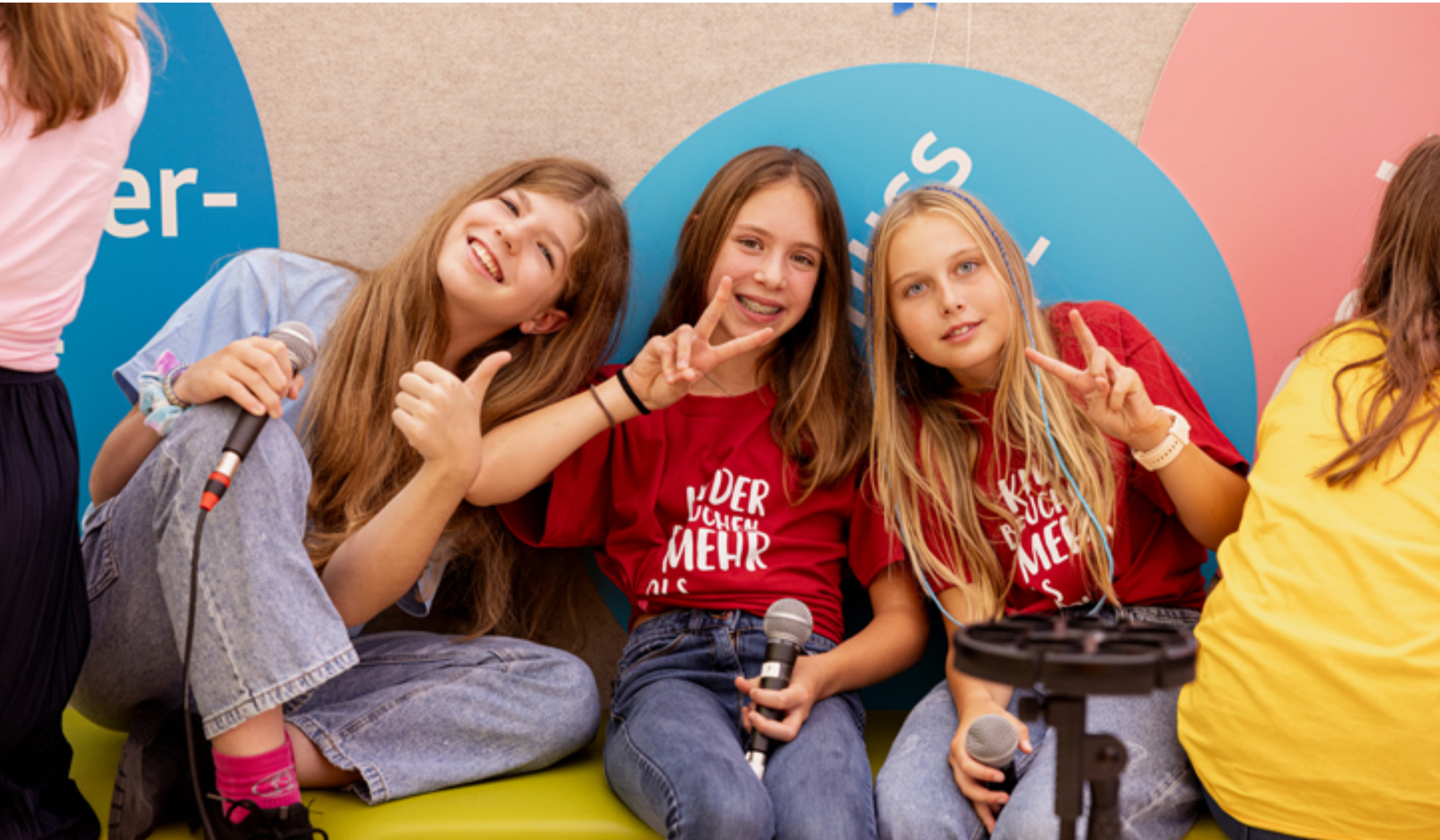 Gemeinsam mit unserem Klassenlehrer, Herrn Albu, hatten wir schon vor den Sommerferien drei Lieder einstudiert, die wir nun performen sollten. Nach zwei intensiven Probetagen war es endlich so weit: Am Mittwoch, den 11.09.2024, stiegen wir um acht Uhr morgens in den Bus, der uns nach Freiburg zur Kinderklinik bringen sollte. Mit im Gepäck hatten wir neben zahlreichem Equipment auch unsere Schulband, bestehend aus Lina, Marco und Benni sowie unsere Tontechniker Anna, Raphi und Lewis. Außerdem begleiteten uns Herr Albu, Herr Schulz und Frau Thein.