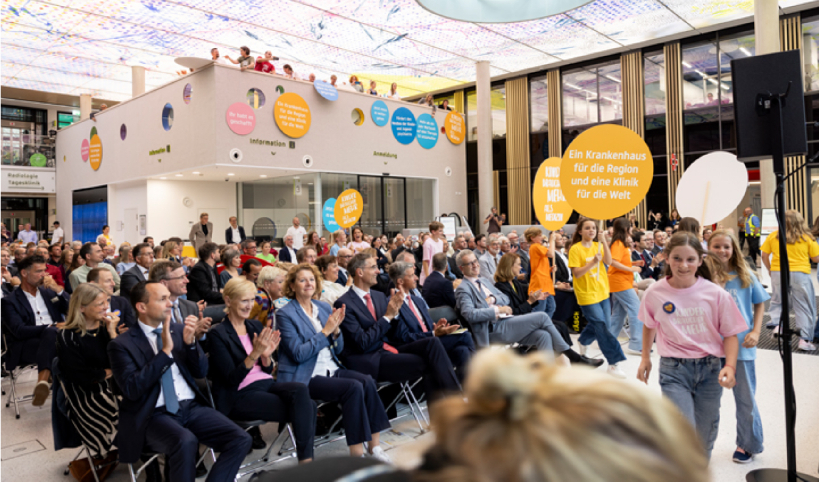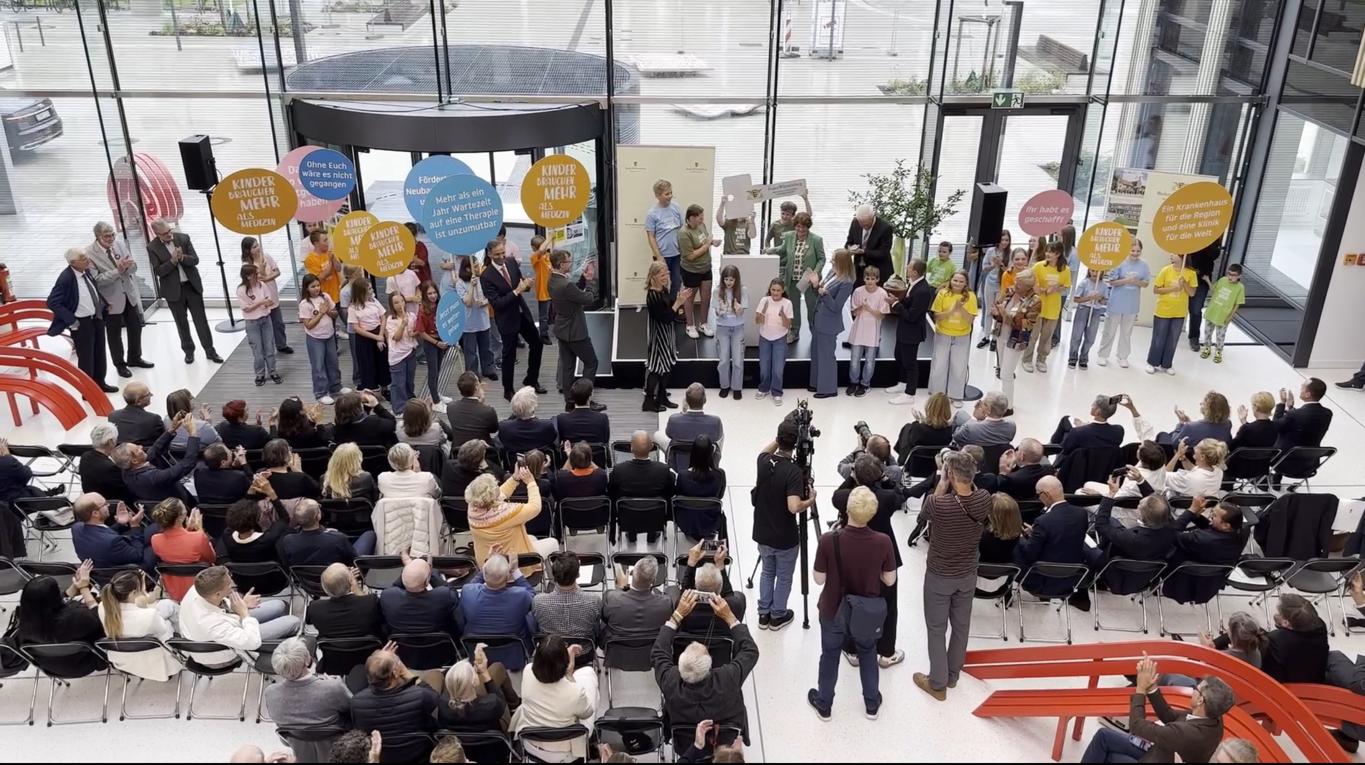 Wir, die Chorklasse R6c, waren sehr aufgeregt: Wir durften bei der Neueröffnung der Kinderklinik der Universitätsklinik Freiburg auftreten!