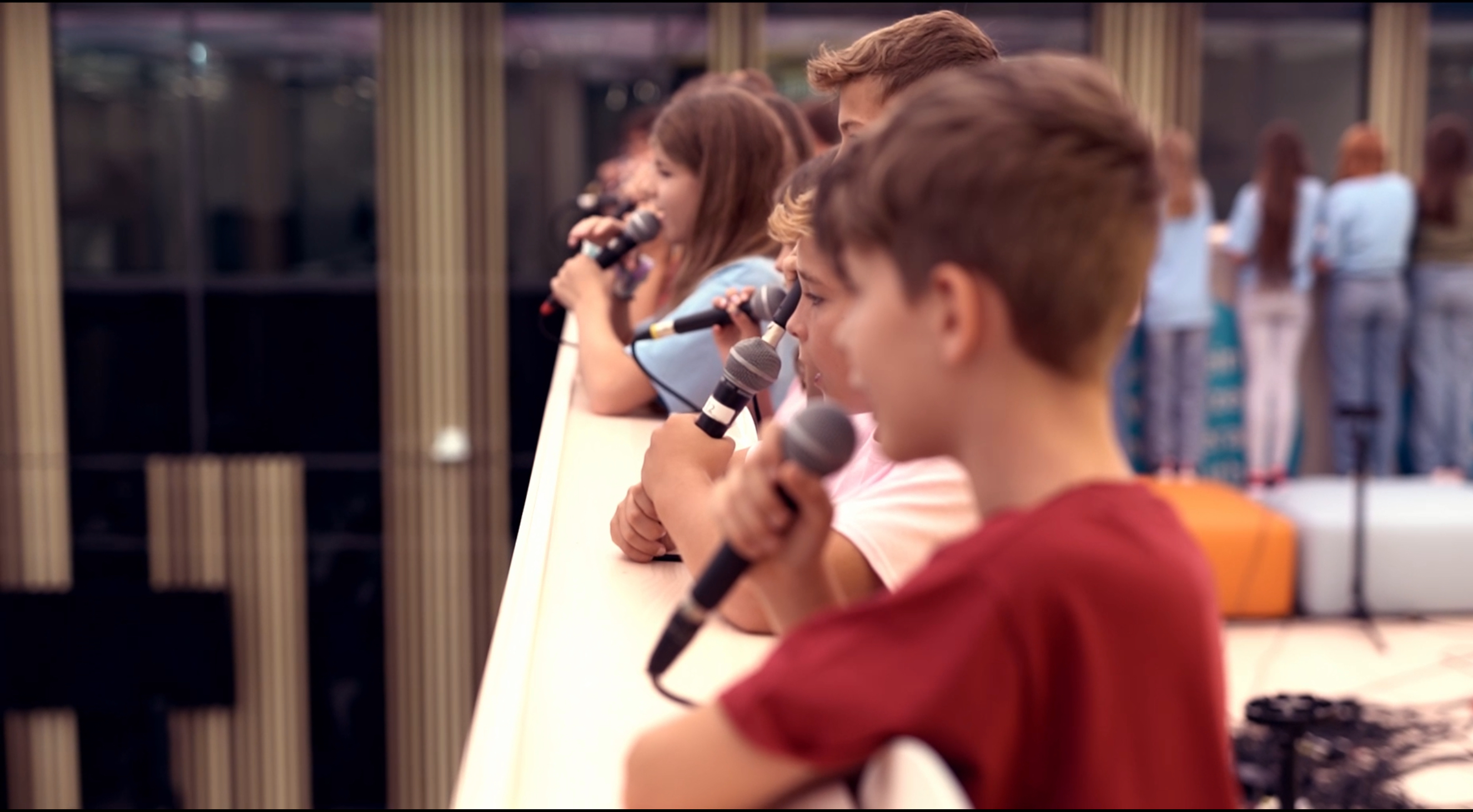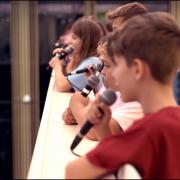 An unserem Ziel angekommen, mussten wir erst einmal den Bus ausladen und die Technik aufbauen. Nachdem wir unsere Mikrofone alle verkabelt hatten, ging es auch schon los mit der Generalprobe für unsere drei Gesangsstücke. Danach hatten wir einen Workshop mit Frau Beyer vom Theater Freiburg, die mit uns einen Flashmob einstudierte, der gemeinsam mit genesenen Kindern, die alle in der Uniklinik Freiburg behandelt worden waren, nach unserem Auftritt stattfinden sollte.