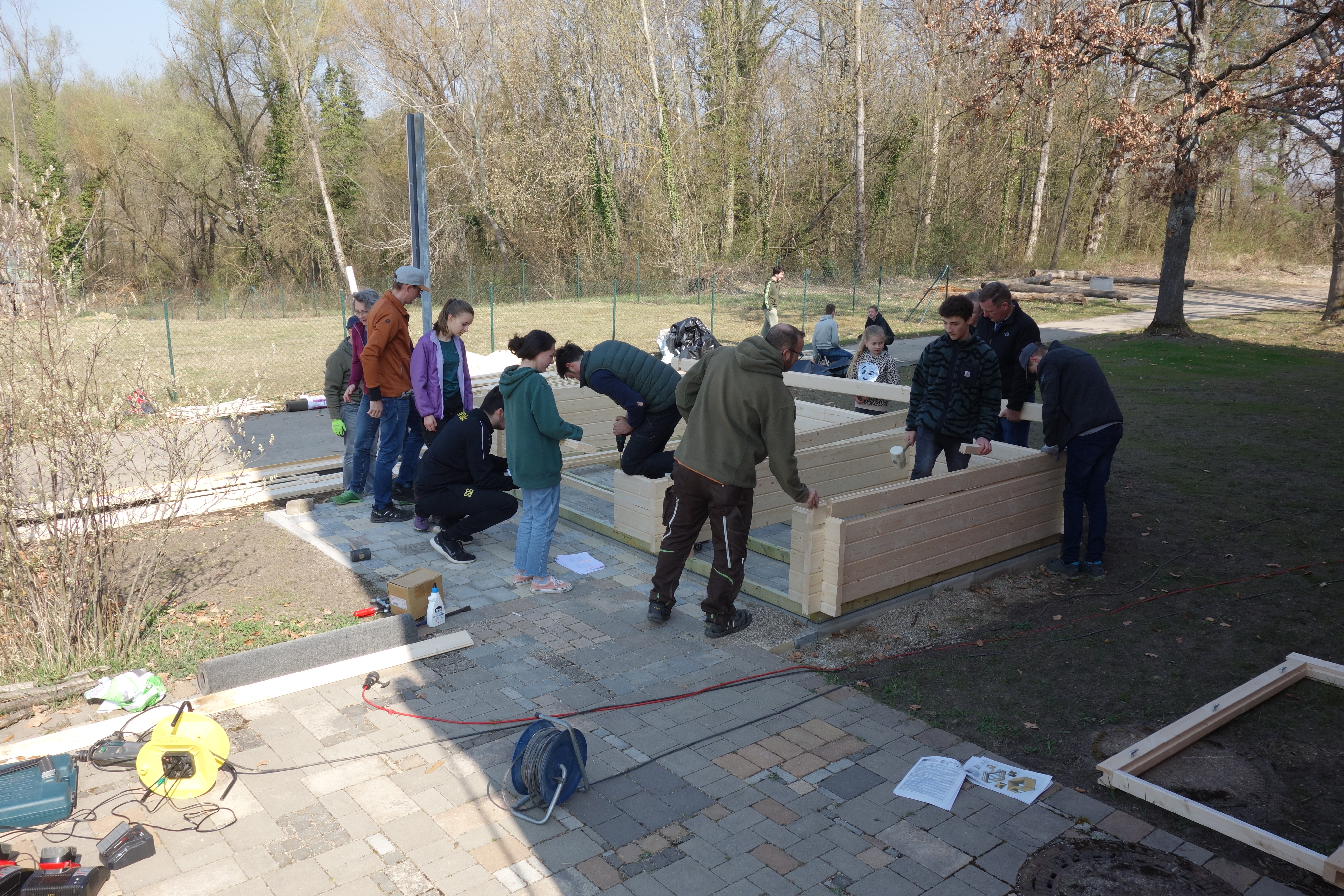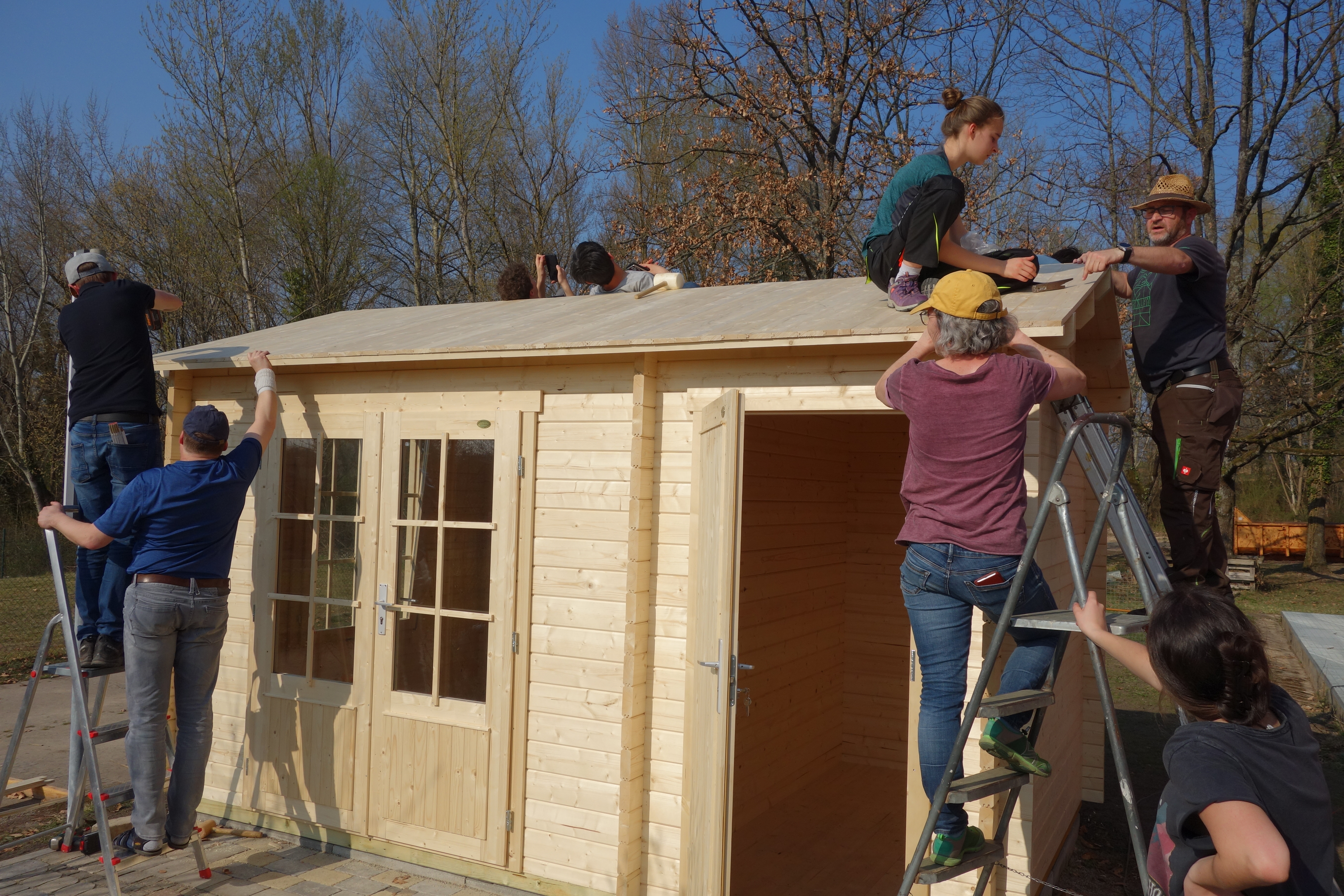 microsoftteams-image_1.jpgDas Fundament dafür wurde von einer externen Firma gelegt. Bei schönstem Frühlingswetter bauten die Schülerinnen und Schüler der AG mit der großartigen Unterstützung von Eltern einen ganzen Tag von morgens um 9 Uhr bis zum späten Nachmittag. Sogar zwei ehemalige Schüler kamen extra, um noch einmal am Schulgarten mitzuwerkeln. Das Ergebnis: Ein kleines Haus mit zwei Räumen für Gartengeräte und für die Anzucht und Überwinterung von Pflanzen – und die ersten leichten Sonnenbrände des Jahres.