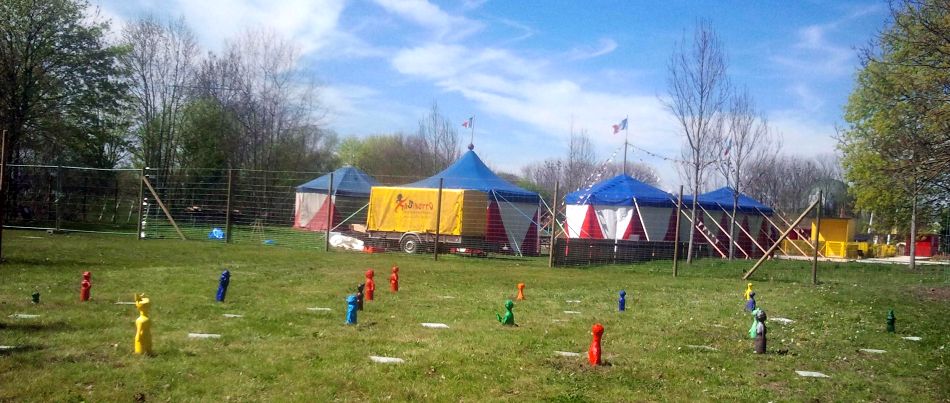Das Besondere der diesjährigen Schulkunstausstellung ist, dass sie sich im Freien und im öffentlichen Raum präsentiert – und zwar auf der Landesgartenschau in Lahr. Die Drehtür am „Ausgang Römerstraße“ der Landesgartenschau führt die Besucher direkt an der Wiese der Schulkunst vorbei.