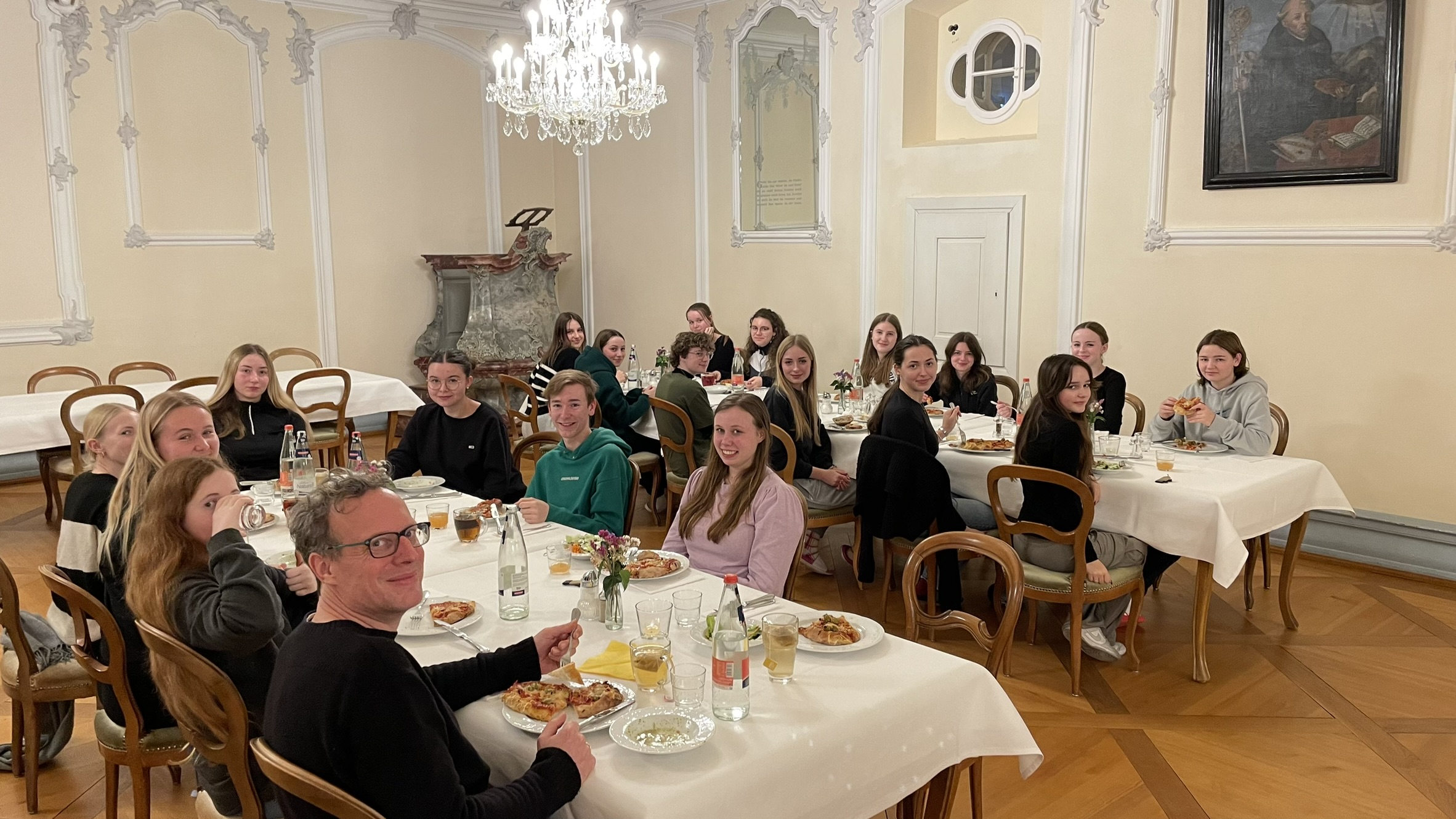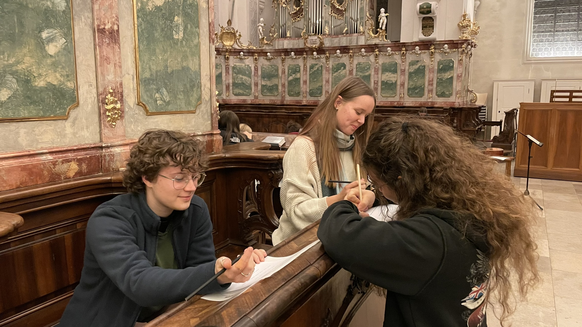 Außerdem hatten wir die Möglichkeit eine uralte Bibliothek zu erkunden. Die Bücher waren zum Teil mehrere hundert Jahre alt. Eines durften wir durchblättern. Es war faszinierend, wie gestochen scharf die Schrift zu erkennen war und wie gut erhalten die Bücher noch waren.