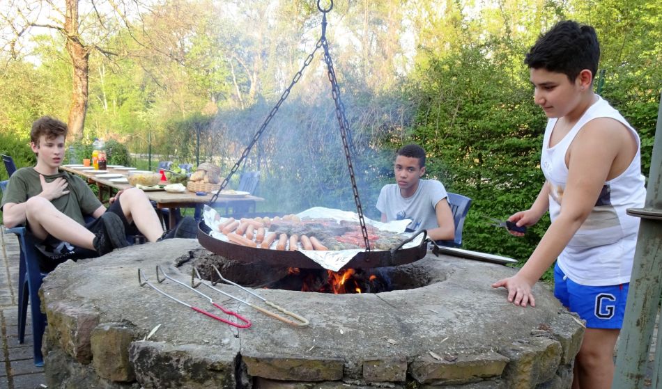 Bei hochsommerlichen Temperaturen Ende April machten sich die Jungen der Unterstufen zusammen mit Herrn Weissenberger und Frau Czarnetzki auf den Weg, um ein gemeinsames Wochenende fernab des Internates zu verbringen. Ziel war das „Alte Rheinwärterhaus“ in Diersheim am Rhein. Gleich am ersten Abend entfachte Can ein Feuer und grillte für uns Steaks und Würste: Das ganze Wochenende machte dem Begriff „Grillmeister“ alle Ehre.