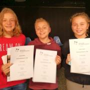 Einen tosenden Applaus gab es schließlich für die drei ersten Sieger: Platz drei belegte Melissa Rube, Platz zwei ging an Till Krupinski und Amelie Kratt vergoss Freudentränen über ihren ersten Platz. Sie reist nun mit ihrem Buch eine Runde weiter ins Kreisfinale. Wir wünschen ihr dafür viel Erfolg und gratulieren allen Siegern und Vorlesern zu den tollen Leistungen!