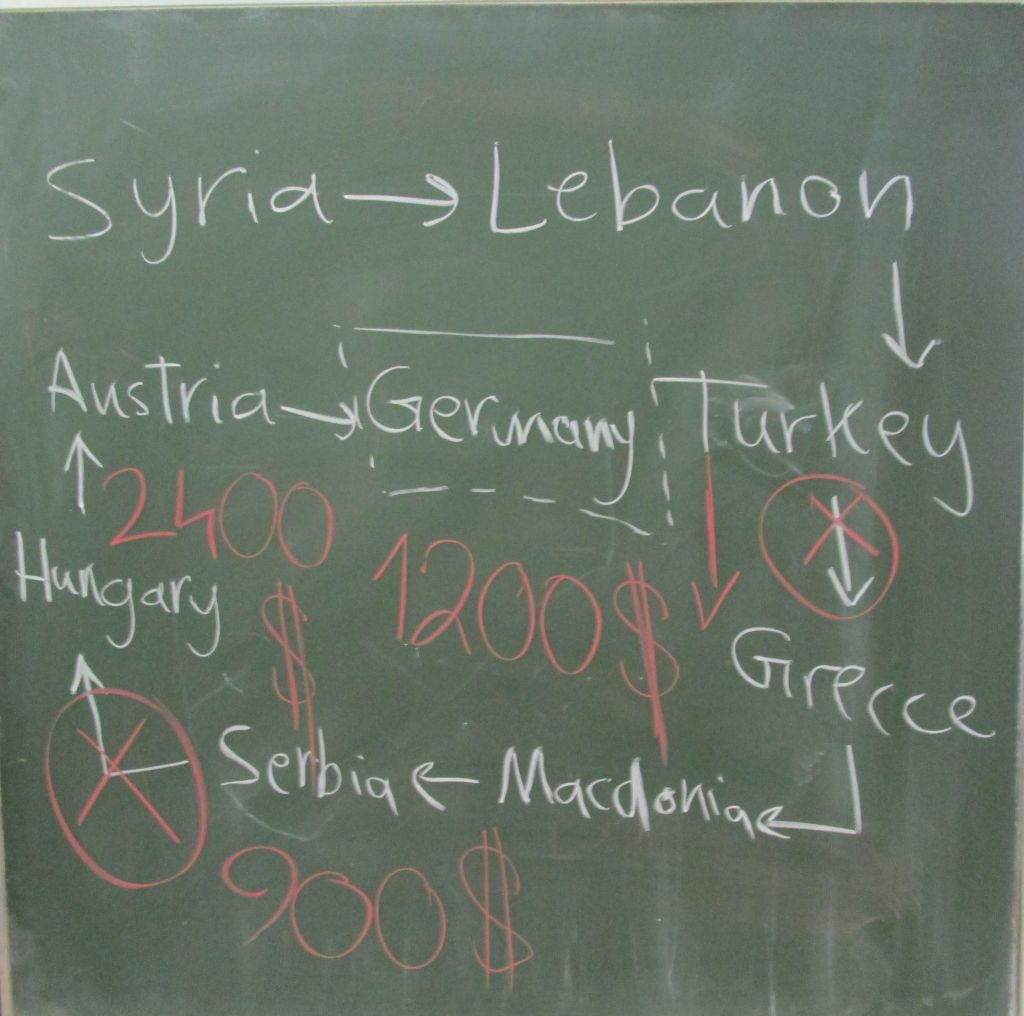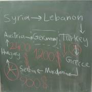 Am Anfang der Präsentation wurde uns ein Vergleich Syriens vor und nach dem Krieg vor Augen geführt. Zaki und Nabil zeigten uns auch, wo und wie sie in Syrien lebten. Danach präsentierten sie einige Bilder zu den verschiedenen Stationen ihrer Flucht nach Deutschland. Während ihrer Präsentation schilderten sie uns viele beeindruckende Erlebnisse, die sich auf ihrer Flucht ereigneten, z. B. wie sie in Österreich und Deutschland vielen freundlichen Helfern begegnet sind.