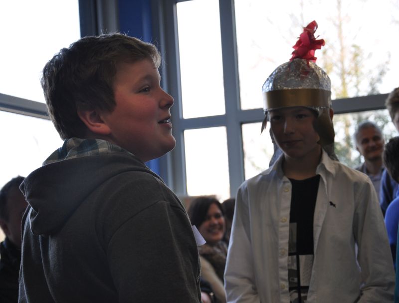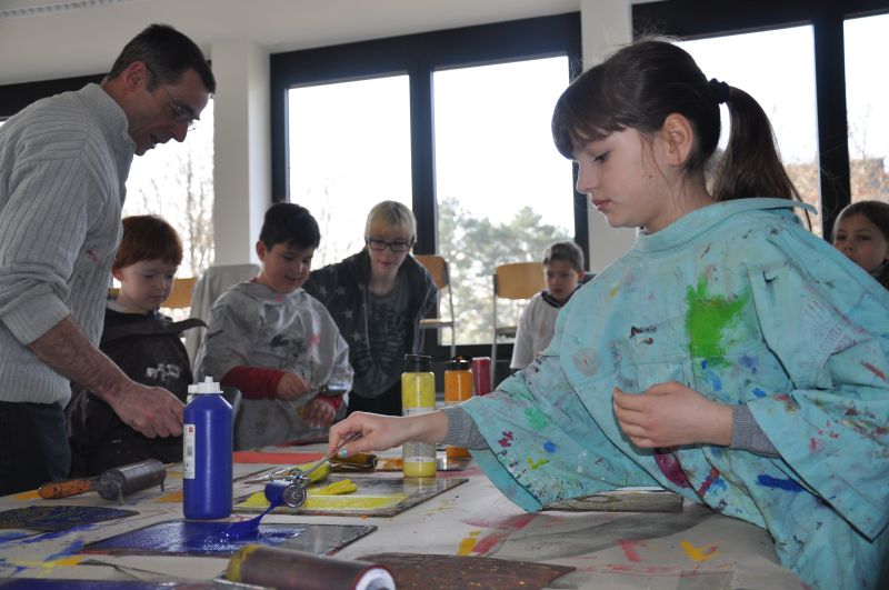 Hier standen die Fragen der Viertklässlerinnen und Viertklässler im Mittelpunkt. „Wie oft hat man an der Heimschule Kunstunterricht? Wie wähle ich aus, ob ich Englisch, Französisch oder Latein lernen will? Darf man jeden Tag ins Schwimmbad?“, interessierte die Kinder, während sie das vielfältige Angebot der Heimschule kennenlernten. Ihre künftigen Schulfächer wurden ihnen von Lehrerinnen und Lehrern, aber auch älteren Schülerinnen und Schülern nähergebracht. Dabei galt es, möglichst viel selbst auszuprobieren: In den Räumen der Bildenden Kunst konnten Drucke gefertigt werden, in der Turnhalle wartete ein Ballparcours, im EDV-Raum wurde Mathe-Tetris gespielt, die Lateinschülerinnen und -schüler der sechsten Klasse verwickelten die jungen Gäste in ein Gespräch – natürlich auf Latein. Am Smartboard wurden zugleich die moderne Ausstattung sowie die neue Homepage der Schule erkundet.