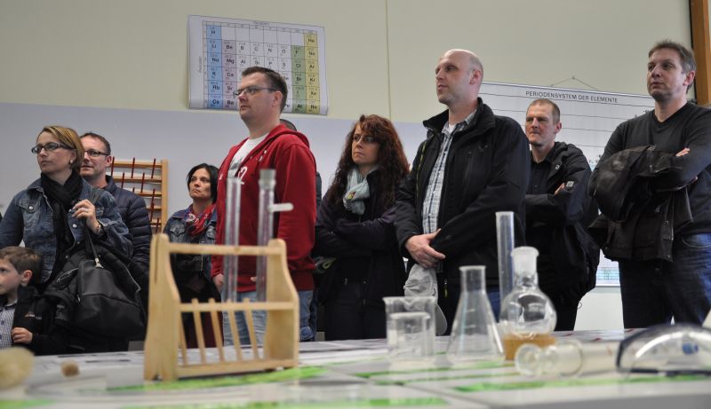 Nach der Begrüßung hatten die Besucher die Möglichkeit, unter der Führung von Schülern der Klassen R7a und R7e das Schulhaus zu erkunden. Die Fachbereiche Englisch und Französisch präsentierten von den Schülern einstudierte Theaterstücke, während im Fach Deutsch unter dem Thema „Keine Panik vor Grammatik“ Lernspiele ausprobiert werden konnten. Lern- und Wissensspiele wurden ebenfalls im Fach Geschichte präsentiert und von den Viertklässlern gespielt. Im Fachbereich Technik waren Werkstücke aus den letzten Jahren ausgestellt. Der Fachbereich NWA präsentierten Versuche aus verschiedenen Naturwissenschaftlichen Bereichen, bei denen die Besucher ihren Forscherdrang entfalten konnten. Die Turnhalle gehörte den Tänzern und Akrobaten der Realschule. In den Musikräumen wurde ein Cajon-Workshop angeboten. In vielen anderen Bereichen, wie EWG und Mathematik, konnten die Schüler und Eltern einen Einblick in die verwendeten Medien und Materialien bekommen.