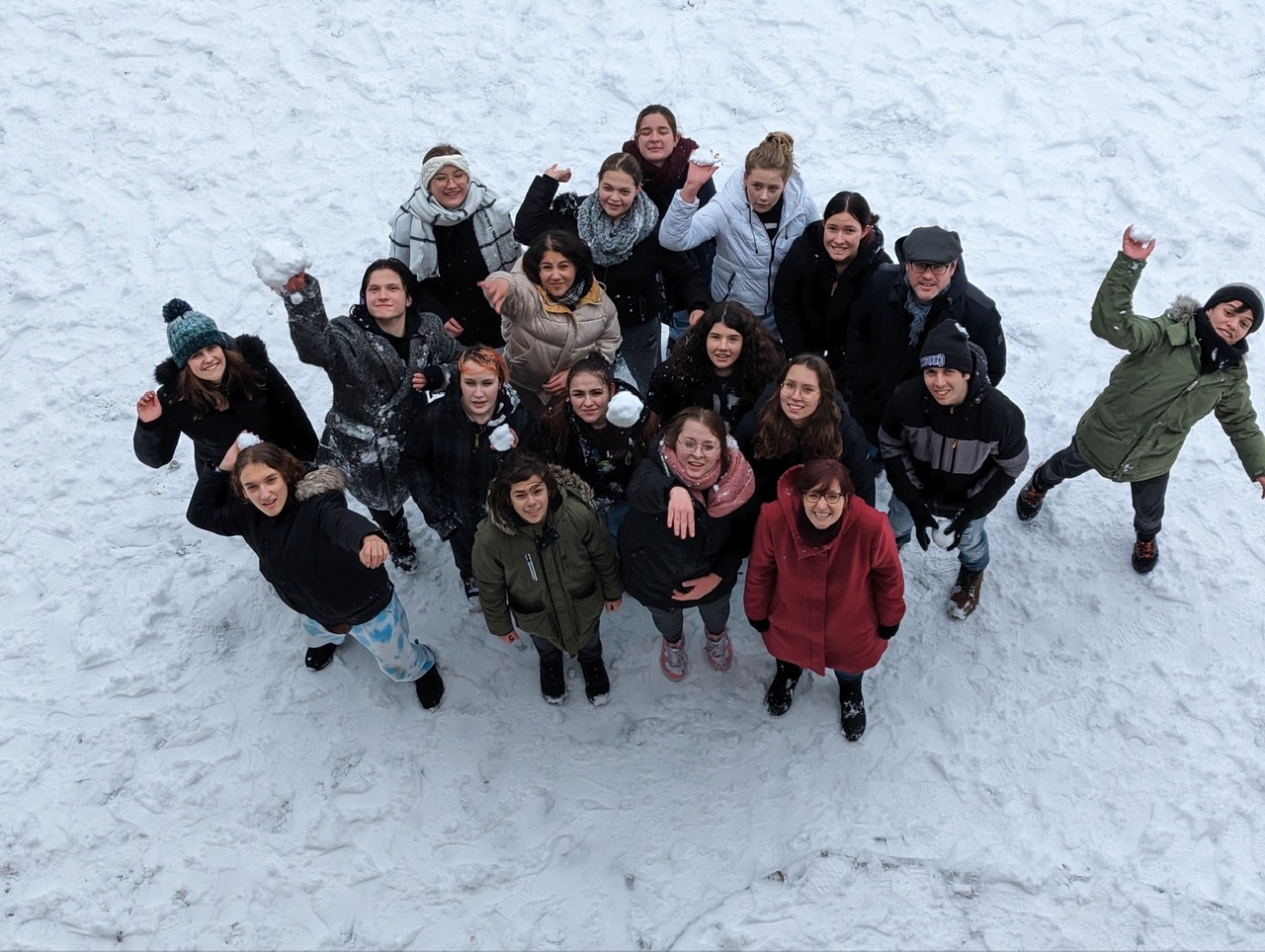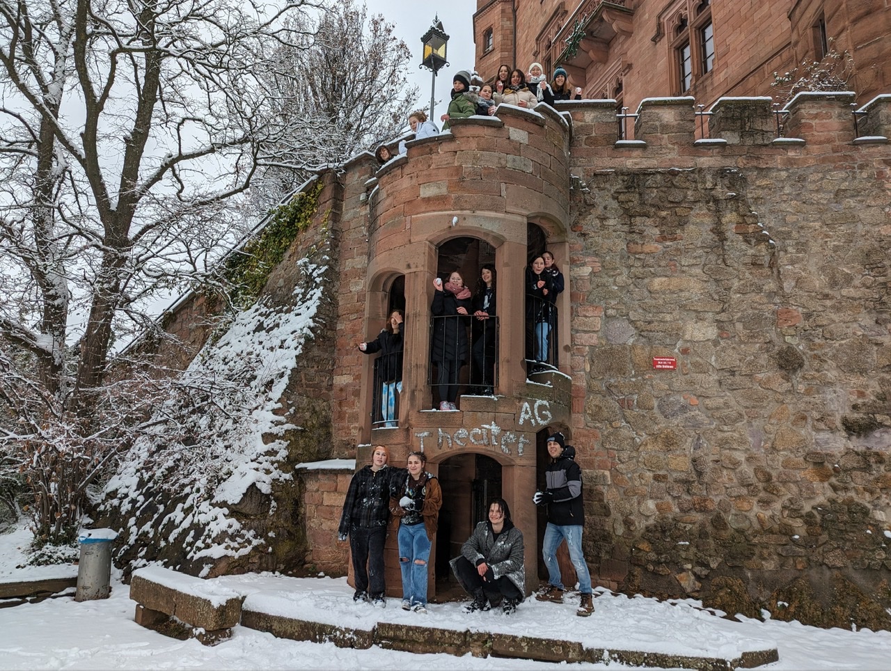 So ging es vor Weihnachten für unseren jungen Schauspielerinnen und Schauspieler in das schöne Schloss Ortenberg. Kaum angekommen ging es auch sofort los, denn mit der Inszenierung des Stücks „100 Songs“ von Roland Schimmelpfennig steht eine große Herausforderung für die Theater-AG an. Nach der Rollenarbeit wurde sehr viel an den Szenen gewerkelt, wobei wir an dieser Stelle schon verraten können, dass jede einzelne Szene ein eigenes kleines Kunstwerk wird. Es wurde geschrien, gesungen, gelacht, geflucht, getanzt und sehr viel Schweiß vergossen. Natürlich wurde aber nicht nur an unserer Inszenierung gearbeitet. So gab es zur Auflockerung eine Schneeballschlacht im Schlosshof oder als Ausklang eine gemeinsame Bekämpfung des Bösen bei einer Runde Werwolf.