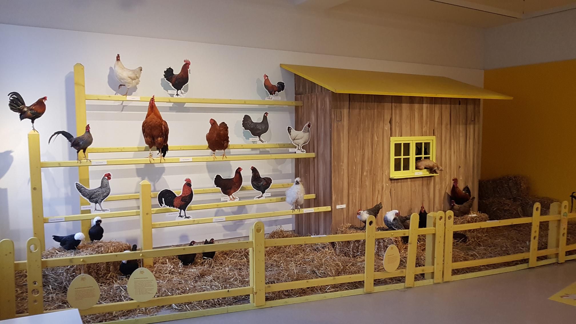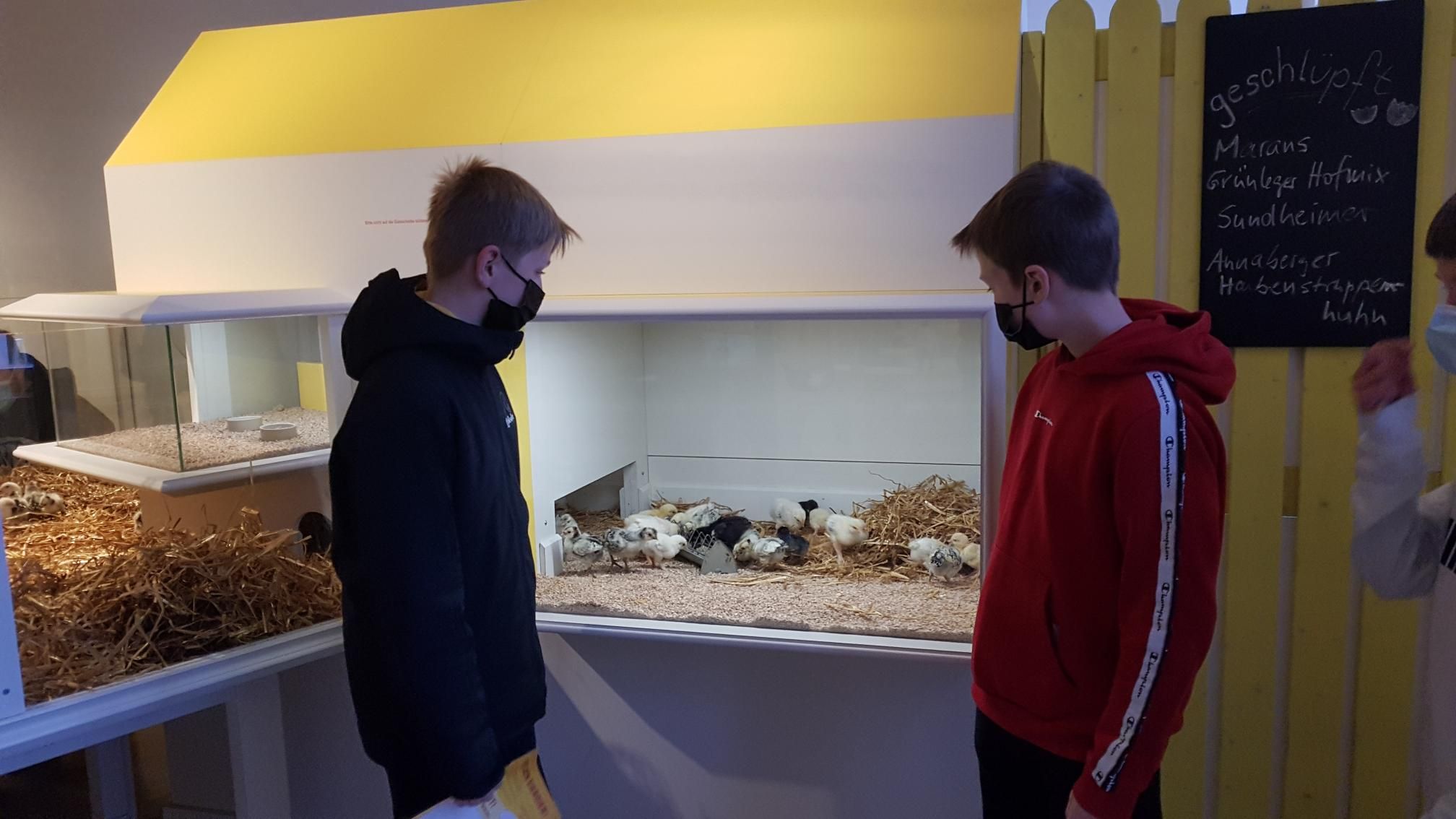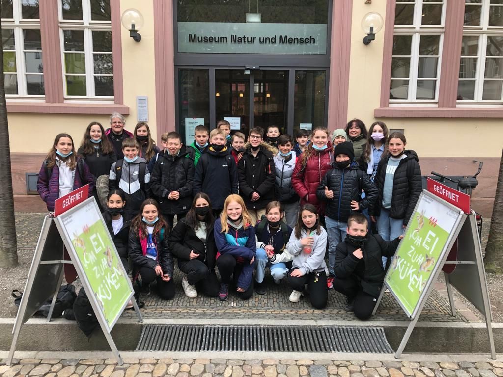 Abschließend waren wir in der Ausstellung „vom Ei zum Küken“ im Museum Mensch und Natur. Im Küken-Gehege konnte man eine bunte Schar unterschiedlicher Hühnerrassen beobachten. Ergänzend zum Thema konnte man sich über Schautafeln zur Geflügelhaltung informieren. Den Werdegang eines Huhns sowie verschiedene Hühnerrassen in Form von Präparaten waren ebenfalls ausgestellt.