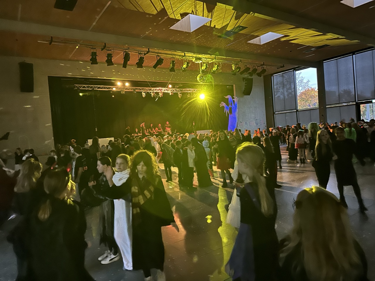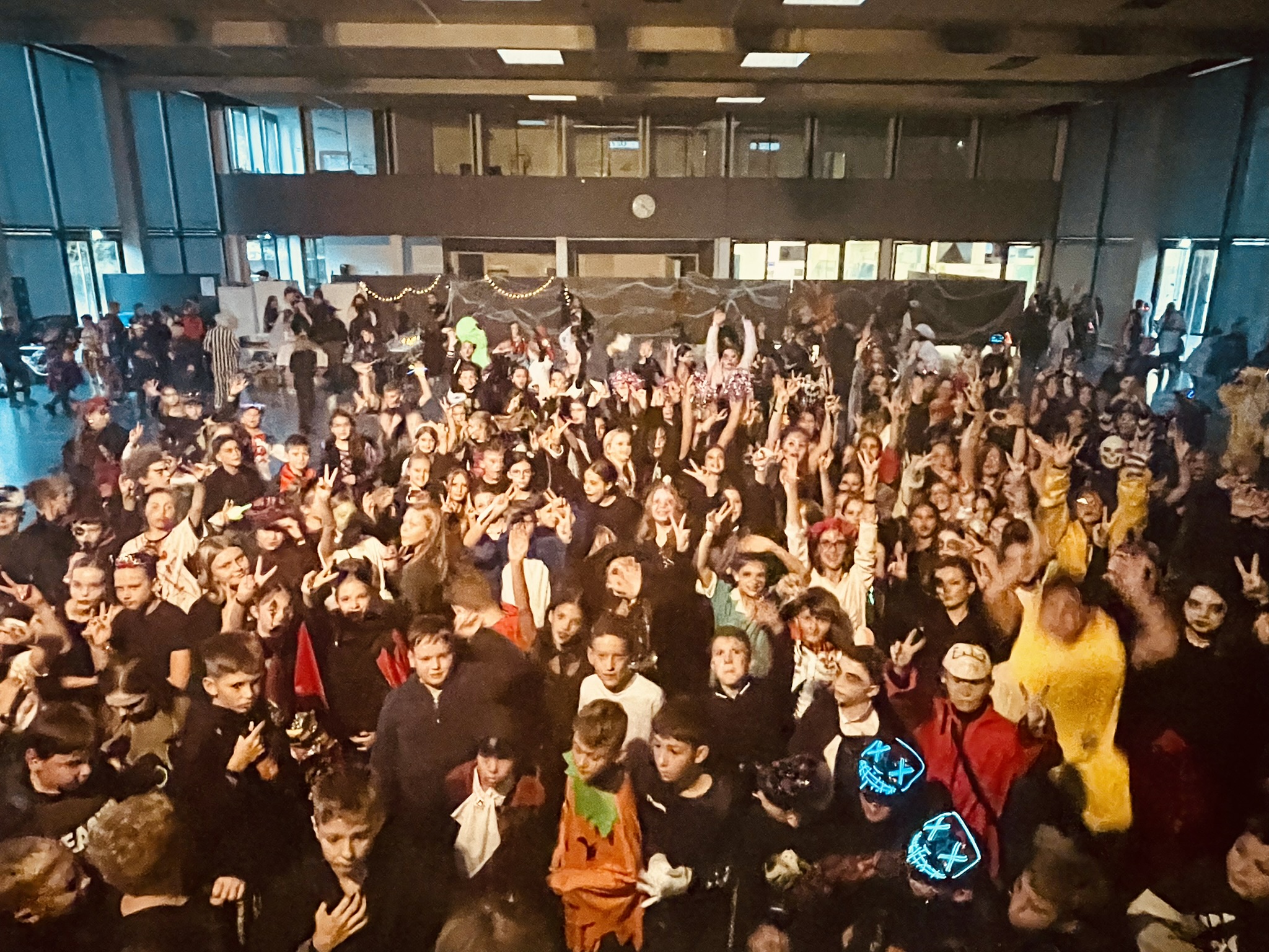 Die SMV organisierte das schaurige Event für die Klassen 5 bis 7 und verwandelte die Aula in eine gruselige Disco mit perfektem Setting, die nichts zu wünschen übrig ließ. Die Schüler:innen erschienen in einfallsreichen, gruseligen Kostümen und sorgten so für die passende Atmosphäre. Zu guten Beats und schwungvoller Musik wurde getanzt, während süße und saure Leckereien für den richtigen Kick sorgten. Eine unvergessliche Nacht mit Gänsehautmomenten!