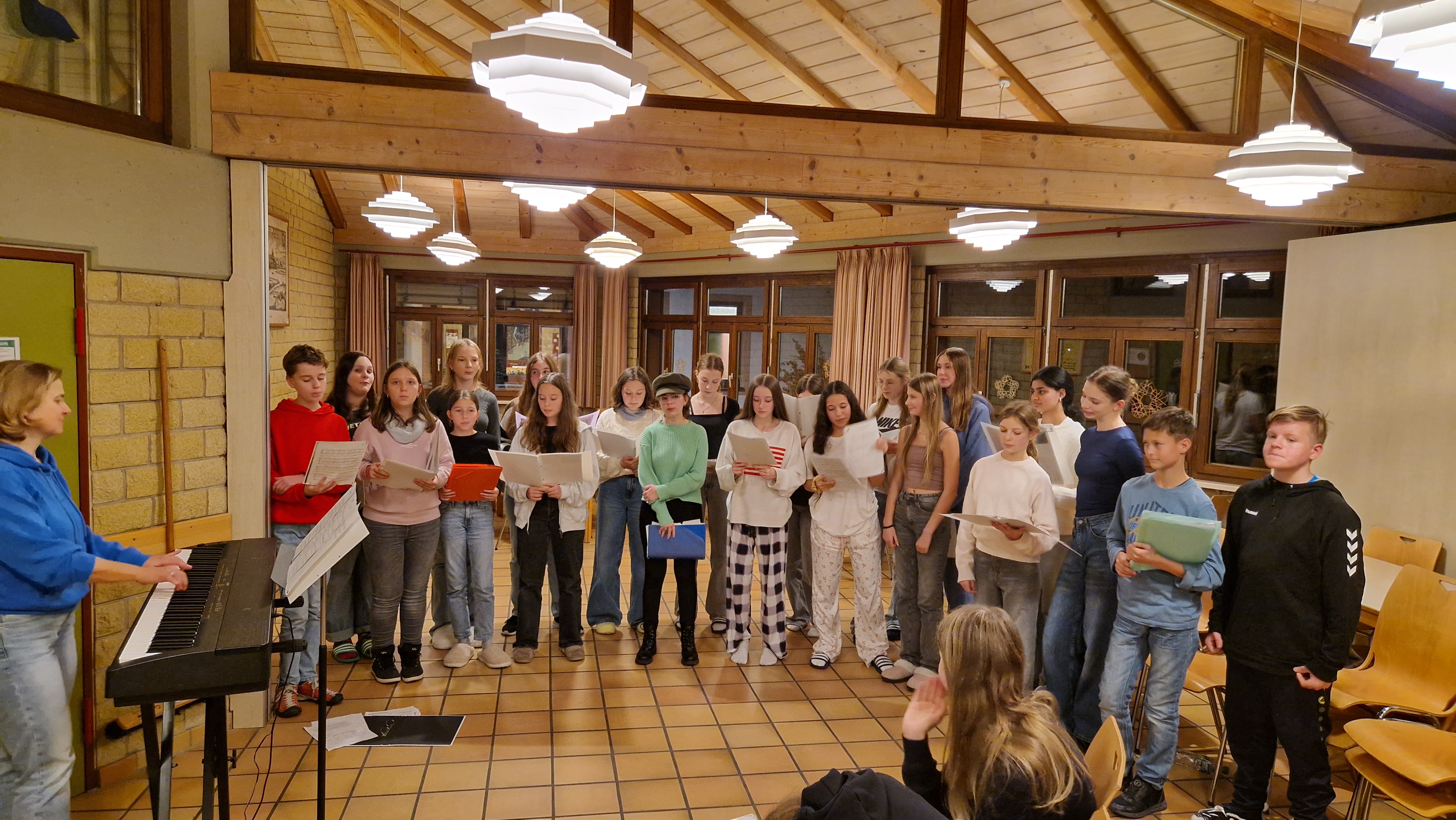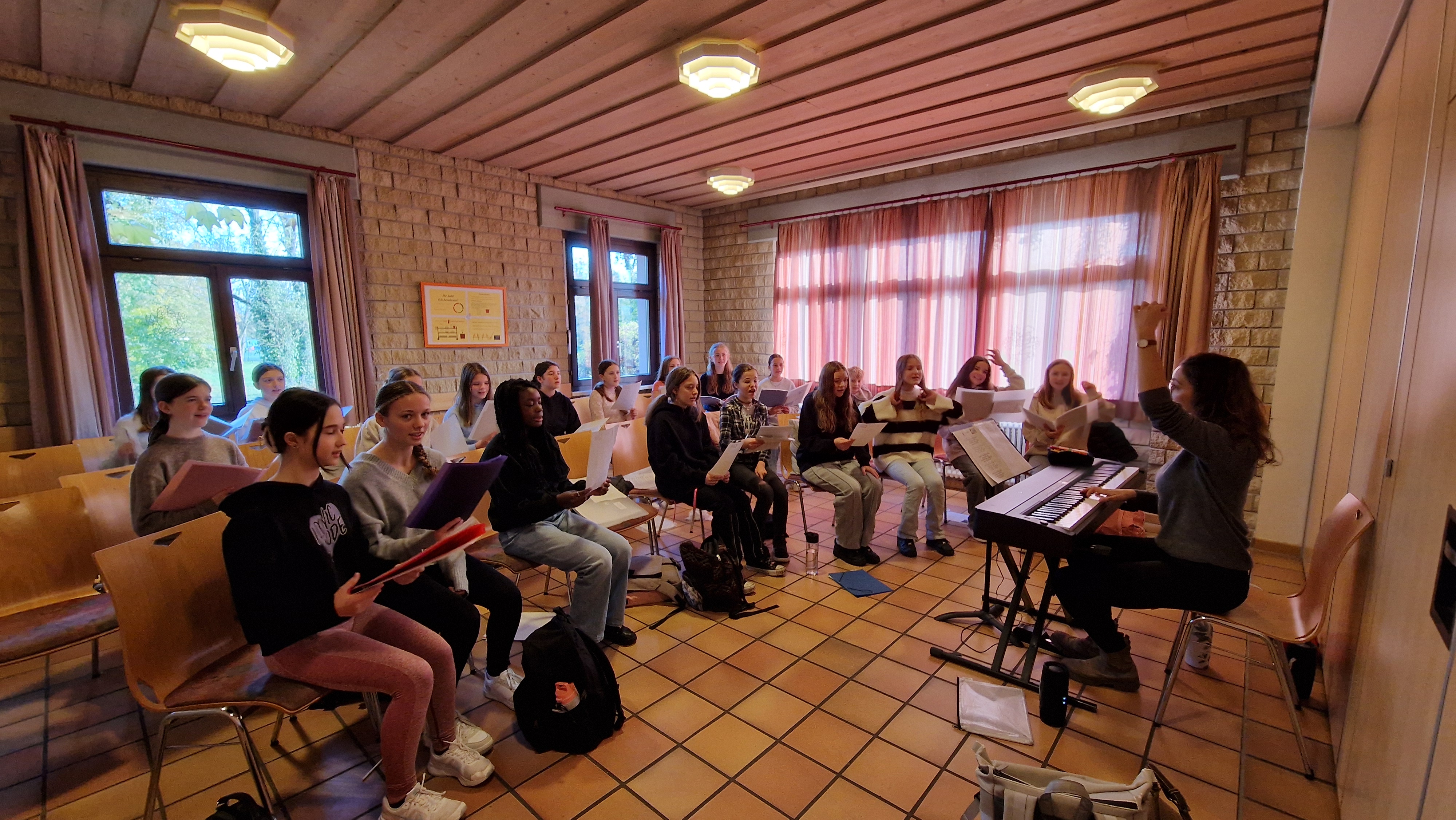 Letzte Woche fanden von Montag bis Mittwoch die Chorintensivtage der siebten und achten Klasse in Breisach statt. Frau Hensle und Frau Studer probten gemeinsam mit ihren Schülerinnen und Schüler von morgens bis abends, mit Raum für ein paar wohlverdiente Pausen, für das bevorstehende Adventskonzert am 4. Dezember. Neben den vielen Proben blieb auch Zeit, die Stadt Breisach zu erkunden und die Gemeinschaft zu stärken.