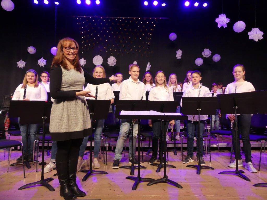 Vier Bläserklassen bereiteten mit ihren fünf Dirigentinnen und Dirigenten den Zuhörern in der weihnachtlich geschmückten Aula der Heimschule mit dem Winterkonzert eine musikalische vorweihnachtliche Bescherung der besonderen Art.