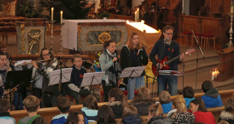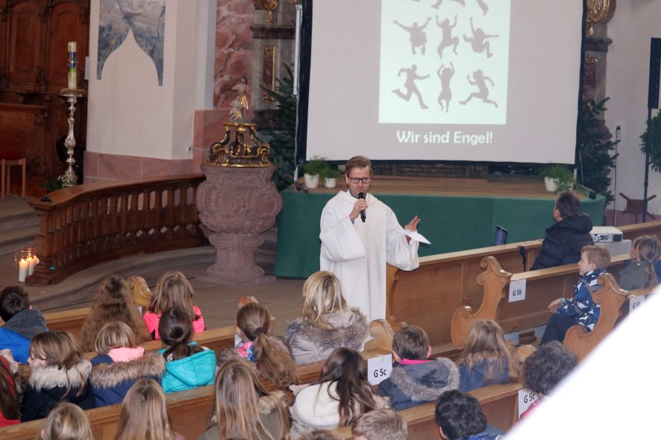 Die Schülerinnen und Schüler der Unter- und Mittelstufe feierten den Weihnachtsgottesdienst in der Ettenheimer Stadtkirche. Hier standen die Engel als zentrale und besonders rätselhafte Figuren der Weihnachtsgeschichte im Mittelpunkt: Was sollen diese beflügelten Gestalten? Gibt es sie tatsächlich und wie können wir sie uns vorstellen. Schulseelsorger Steffen Reich bat die Schülerinnen und Schüler, sich umzuschauen, denn da gäbe es Engel zu entdecken: „Wir alle können Engel sein. Wir haben zwar keine Flügel und Lichtgewänder, aber wir haben Beine, um dahin zu gelangen, wo wir benötigt werden, Hände, um zu helfen, und Münder, um von Gott zu erzählen und singen.“ Begleitet von der Tau-Band unter der Leitung von Daniel Gaschick konnten sich die Schülerinnen und Schüler so mit dem Lied „Von guten Mächten wunderbar geborgen“ vor den Ferien voneinander und vom alten Jahr verabschieden. Gesamtleiter Eberhard Pfister und Realschulrektorin Ulrike Hugel verabschiedeten an dieser Stelle die Schülerinnen und Schüler sowie die Lehrerinnen und Lehrer mit Wünschen für eine gesegnete Weihnachtszeit.
