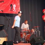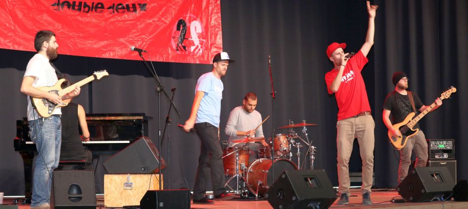 Till und Felix Neumann machte die Arbeit mit den „neuen Sterne am Ettenheimer Rap-Himmel“ (O-Ton Zweierpasch) sichtlich Spaß und baten die Schülerinnen und Schüler daher beim Abschlusskonzert in der Aula der Heimschule nur zu gerne ans Mikrofon.