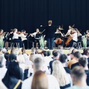 Frühsommerliche Temperaturen und erwartungsfreudige Zuhörerinnen und Zuhörer boten die geeignete Kulisse für das Konzert der Streicherklassen und des Streichorchesters der Heimschule St. Landolin.