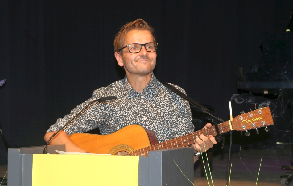 Auch Schulseelsorger Steffen Reich wird nach zehn Jahren die Heimschule verlassen, um die Aufgabe als Krankenhausseelsorger in Elzach zu übernehmen. Zum Abschied wurde noch einmal deutlich, wie stark Steffen Reich es verstand, das Amt des Schulseelsorgers persönlich so auszufüllen, dass er für alle Mitglieder der Schulgemeinschaft ein wichtiges Gesicht des religiösen Lebens an der Schule geworden ist. Nicola Heckner beschrieb ihn mit seiner offenen, positiven und begeisternden Art als einen verlässlichen Begleiter des Schullebens – und vor allem der Internatsgemeinschaft. Matthias Küchle hob für die Fachschaft Religion heraus, wie es Steffen Reich immer wieder gelungen sei, in Gottesdiensten und in persönlichen Gesprächen verständlich, lebensnah und einladend vom Glauben zu sprechen. Steffen Reich selbst verabschiedete sich mit Gitarre und einem selbstgeschriebenen Lied und erhielt – sicherlich nicht nur dafür – standing ovations.