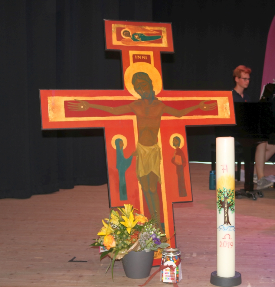 In den Schulgottesdiensten stellte das Gottesdienstteam um Schulseelsorger Steffen Reich und die Religionslehrer Daniel Kurz und Patrick Berg ausgehend von den Fensterbilder der Schulkapelle die vier Elemente in den Mittelpunkt. Ausgehend von biblischen Gedanken stand die beim gemeinsamen Nachdenken, Singen und Beten die Frage im Mittelpunkt: Was war in diesem Schuljahr elementar? Durch die Begleitung der Tau-Band unter der Leitung von Daniel Gaschick konnte das Schuljahr so stimmungsvoll beschlossen werden – und die Schulleitungen alle Schülerinnen und Schüler in die Sommerferien verabschieden.