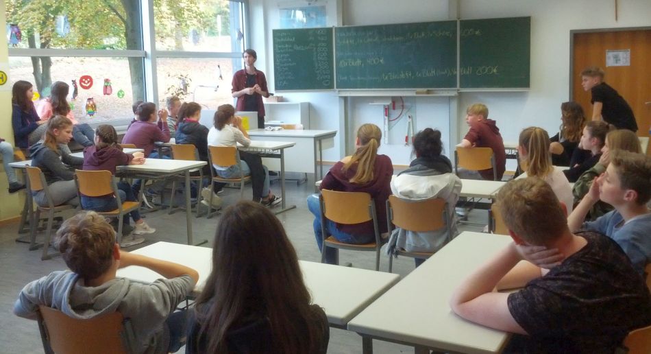 Im Rahmen der Themenwoche „Eine Welt“, die für die 8. Klassen des Gymnasiums an der Heimschule St. Landolin stattfand, war dieses Jahr ein Team der Landeszentrale für politische Bildung (LpB) aus Freiburg zu Gast. Knapp 90 Schülerinnen und Schüler der 8. Klassen simulierten mit großen Einsatz den Welthandel.