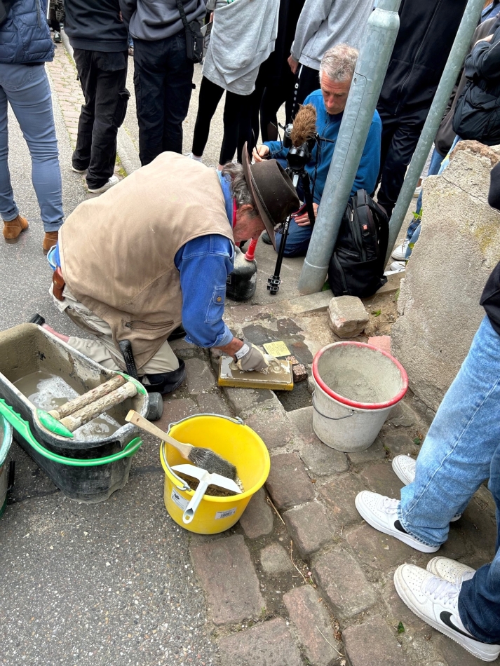 Am Mittwoch, den 24. Mai 2023, besuchte die Klasse R7e von Herrn Giesel und der Religionskurs der K2 von Frau Kurz die Stolperstein-Verlegung vor der Altdorfer Synagoge. Die Stolpersteine für Alice und Leopold Dreyfus wurden höchstpersönlich durch den Künstler Gunter Demnig gesetzt.