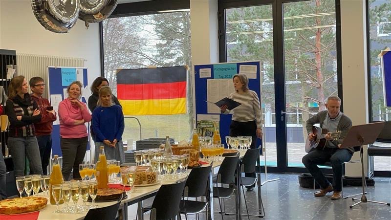 Am 22. Januar 1963 unterzeichneten der französische Präsident Charles de Gaulle und der deutsche Bundeskanzler Konrad Adenauer den Élysée-Vertrag. Dieser Vertrag zur deutsch-französischen Freundschaft und Zusammenarbeit rückte die beiden Nachbarländer politisch näher und bildete den Ausgangspunkt für einen stärkeren kulturellen Austausch – so etwa auch in der Bildung. Weil er somit einen wichtigen Schritt bei der Überwindung der sogenannten Erbfeindschaft zwischen Deutschen und Franzosen darstellt, feierten die Französischfachschaften von Gymnasium und Realschule der Heimschule St. Landolin mit Schülerinnen und Schülern sowie dem Lehrerkollegium das 60-jährige Jubiläum des Vertrages.