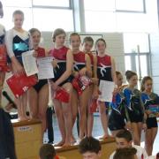 Die fünf Turnerinnen boten an allen vier Geräten konzentriert ihre Übungen dar. Vor allem die Übungen von Lara riefen anhaltenden Beifall von Zuschauern und Wettkämpferinnen hervor, zeigte sie doch vor allem am Boden mehrere Höchstschwierigkeiten. So schafften wir es, mit mehr als drei Punkten Abstand die zweite Mannschaft hinter uns zulassen, gegen die wir im RP-Finale noch verloren hatten.