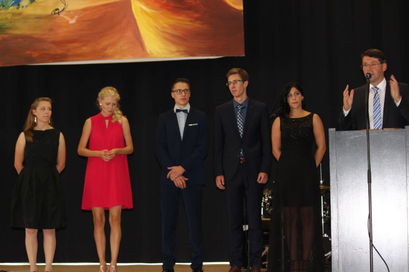 Mit großer Freude verlieh Bürgermeister Bruno Metz die Preise der Stadt Ettenheim an die vier Besten des Allgemeinbildenden Gymnasiums, Simon Fehling, Julius Kirner, Theresa Küchle, Kirstin Stiller und an die Beste des Beruflichen Gymnasiums Louisa Zipse (Durchschnitt 1,1). Sein Credo nicht nur an die Preisträger lautete: „Werden Sie Generalist neben Ihrer Spezialisierung!“