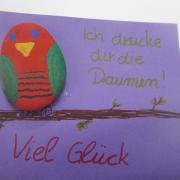 Seit einigen Jahren ist es bei uns zu einer schönen Tradition geworden, dass die Schülerinnen und Schüler der 5. Klassen des Gymnasiums im Kunstunterricht einen kleinen Mutmacher für alle Abiturienten gestalten. In diesem Jahr werden die Prüflinge bei ihrer ersten Abi-Klausur einen bemalten Stein mit passendem Kärtchen an ihrem Platz vorfinden, mit dem zum Ausdruck kommen soll, dass wir ihnen als Schulgemeinschaft die Daumen drücken und an sie denken. Eine nette Geste, die die angespannte Situation hoffentlich etwas auflockern kann, und ein positives Signal für die Prüfung ist.