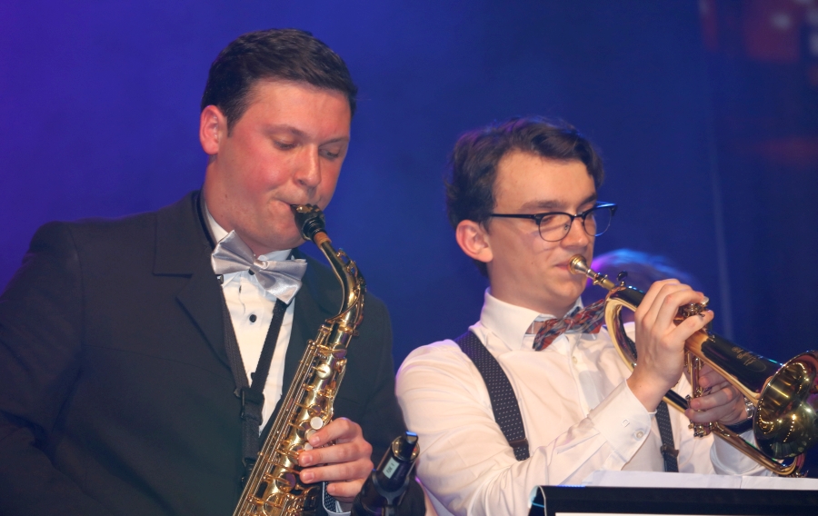 Dieses Konzert war nicht nur ein Abschiedskonzert für manchen Musiker, sondern für einige Musiker auch ein Wiedersehenskonzert. Ehemalige Jazz Chillers sind kurz an die Heimschule zurückgekehrt, um an diesem Konzert teilzunehmen. Eine tolle Geste der Verbundenheit mit ihrer Heimschule. Mit einem Medley gedachte diese Ehemaligenband ihrer Zeit als Jazz Chillers. Das Publikum erlebte ein Feuerwerk bekannter und beliebter Melodien von Polka bis zum Swing. Absolutes Glanzlicht war dann mit dem Stück „Chicken“ der gemeinsame Auftritt von ehemaligen und aktuellen Jazz Chillers: Jetzt wurde der Saal so richtig gerockt und eine Zugabe war unumgänglich.