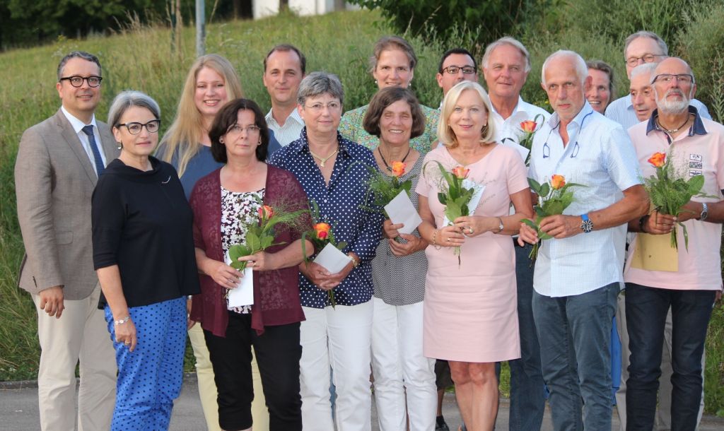 In Ulrike Henninger (15 Jahre als Lehrerin für Deutsch und Bildende Kunst an der Realschule), Marina Riegler (17 Jahre als Lehrerin für Spanisch und Englisch am Gymnasium), Eva Maria Dunne (24 Jahre als Lehrerin für Englisch und Deutsch am Gymnasium), Gabriele Throm (34 Jahre als Lehrerin für Englisch und Französisch am Gymnasium) und Franz Stegmüller (35 Jahre als Lehrer für Wirtschaft und EDV an den Beruflichen Gymnasien und am Berufskolleg) verabschieden sich Lehrerinnen und Lehrer die Heimschule St. Landolin, die in den vergangenen Jahrzehnten wesentlich das Lernen und Leben an der Schule – und somit Generationen von jungen Menschen – prägten. Viele Klassen- und Schulfeste, Schüleraustausche und Studienfahrten wären ohne das Engagement dieser Lehrerinnen und Lehrer über die tägliche pädagogische Arbeit hinaus nicht möglich gewesen. Daher wurden sie mit persönlichen Geschenken für den Ruhestand, Anekdoten aus den vergangenen Jahren und selbstgedichteten Liedern verabschiedet.