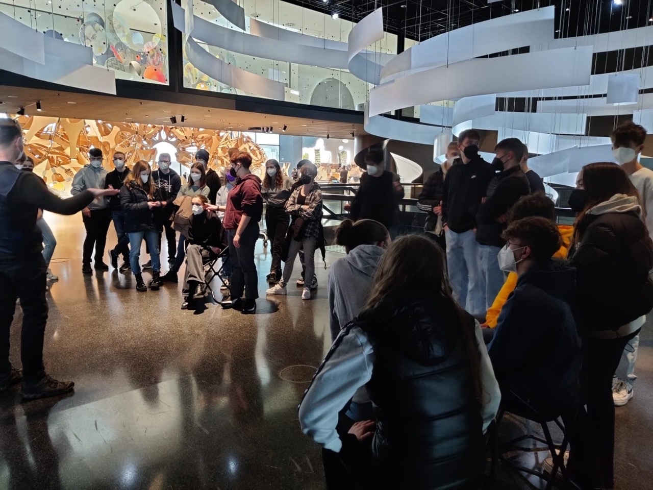 Mit dem Donnerstag kam schon der letzte Tag mit abwechslungsreichem Programm. Die Schülerinnen und Schüler konnten aus einer Vielzahl an Aktivitäten am Vor- und Nachmittag wählen. Zur Wahl standen ein Besuch im Berliner Zoo, die aktive Erkundung des Computerspiel Museums und eine Ausstellung zur Entstehung von Graffiti und Streetart im Urban Nation Museum. Der Frage „Wie wollen wir in Zukunft miteinander leben?“ gingen beide Klassen gemeinsam beim Besuch des Futuriums nach. Themen wie die Rolle von künstlicher Intelligenz, Nachhaltigkeit und erneuerbaren Energien konnten hier auf faszinierende Weise nicht nur digital erforscht werden. Diesen erlebnisreichen Tag ließen beide Klassen bei einem leider etwas kurz gehaltenen gemeinsamen Abendessen ausklingen.
