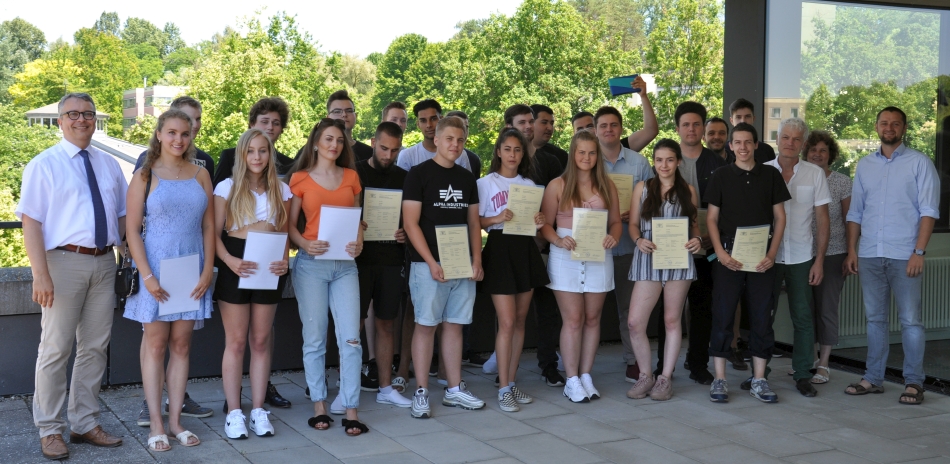 Mit Gratulationen und den besten Wünschen für den weiteren Ausbildungsweg haben Schulleitung und Lehrkräfte die Absolventen des Jahrgangs am Kaufmännischen Berufskolleg I der Heimschule St. Landolin verabschiedet. Diyar Taskiran erhielt für die besten Leistungen einen Preis. In einer kleinen Feierstunde überreichte Gesamtleiter Eberhard Pfister Preise und Zeugnisse.