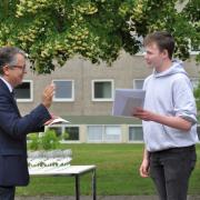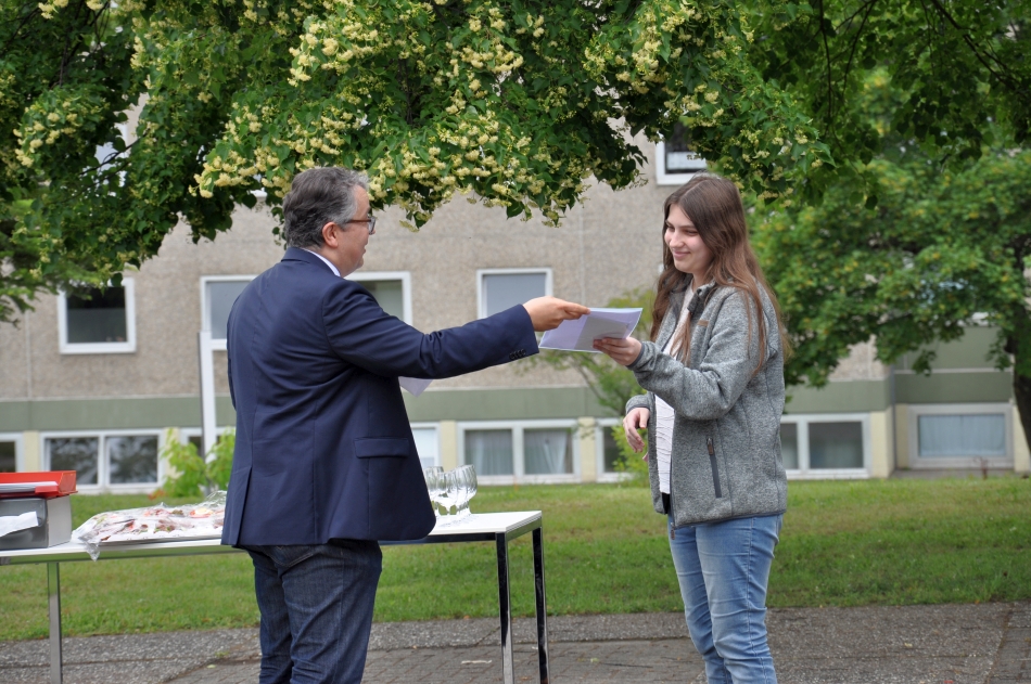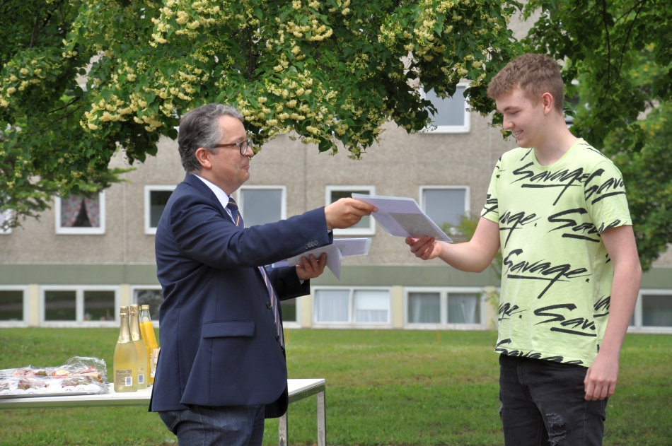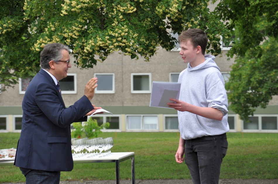 Mit Gratulationen und den besten Wünschen für den weiteren Ausbildungsweg haben Schulleitung und Lehrkräfte die Absolventen des Jahrgangs am Kaufmännischen Berufskolleg I der Heimschule St. Landolin verabschiedet. Chiara Hauser, Marvin Heck und Julian Ziebold erhielten für die besten Leistungen Preise. Im Freien und mit dem notwendigen Abstand, aber dem Anlass angemessen feierlich überreichte Eberhard Pfister Preise und Zeugnisse.