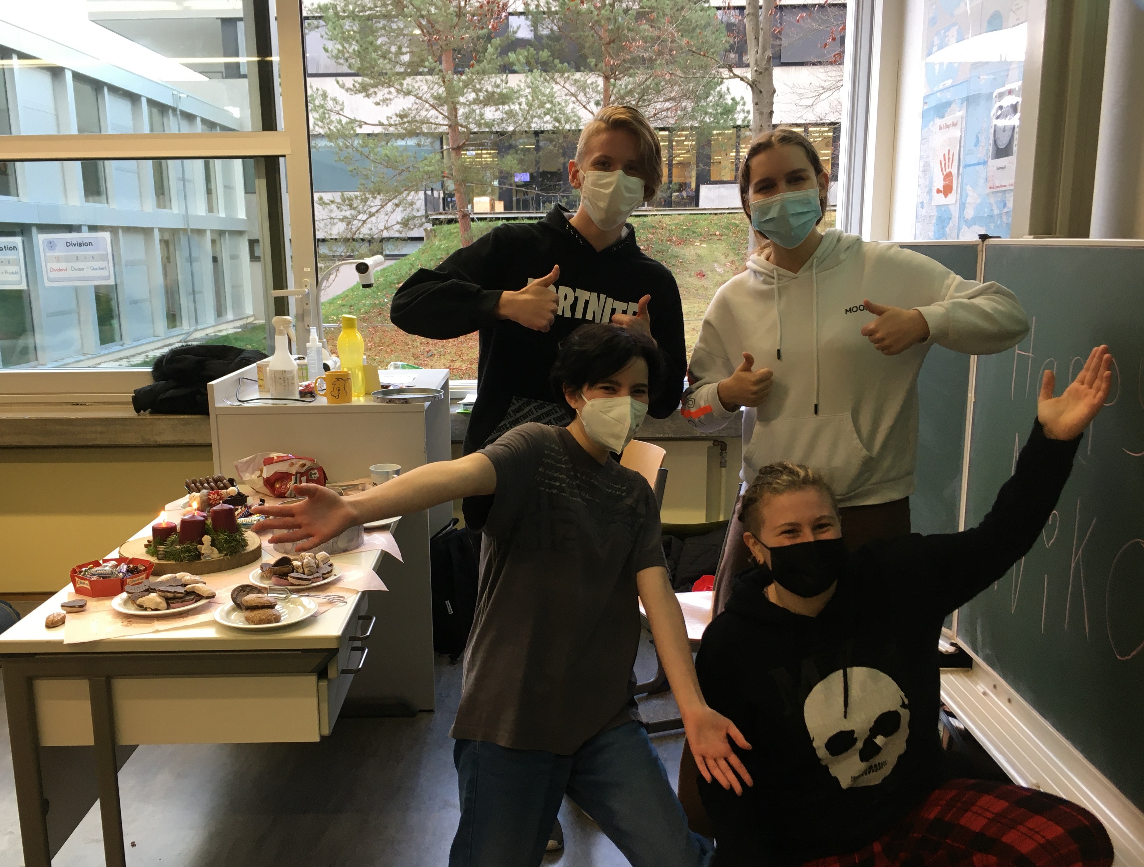 Mit vielen leckeren Plätzchen und heißem Punsch breitete sich schnell eine adventliche Stimmung in den Klassenzimmern aus. Doch es ging nicht nur um das leibliche Wohl! Weihnachtsgeschichten wurden vorgelesen sowie Weihnachtslieder gesungen und zu diesen getanzt. Um den Advent dauerhaft in die Klassenzimmer zu holen, wurden fleißig Sterne aus Transparentpapier für die Dekoration der Fenster gefaltet. Zudem wurde in einigen Klassen mit großer Freude gewichtelt, in einer anderen Klasse schaute der Nikolaus sogar höchstpersönlich vorbei.