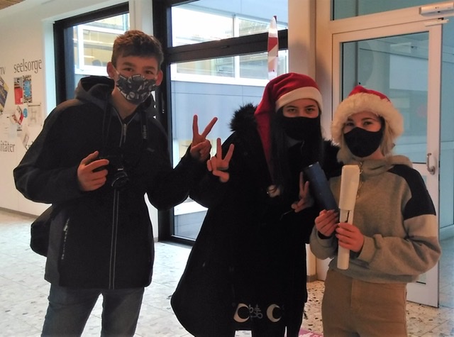 In der Folge entstanden drei Videos – in drei verschiedenen Sprachen. Eine Vorstellung der Heimschule auf Französisch (Französisch R8cde: Frau Kohler), eine Vorstellung des heimschuleigenen Adventskranzes in Bildern auf Deutsch (Religion R8c: Herr Freund) – und Videos zum Thema „Christmas in Germany“ (Englisch R9d: Frau Hütter).